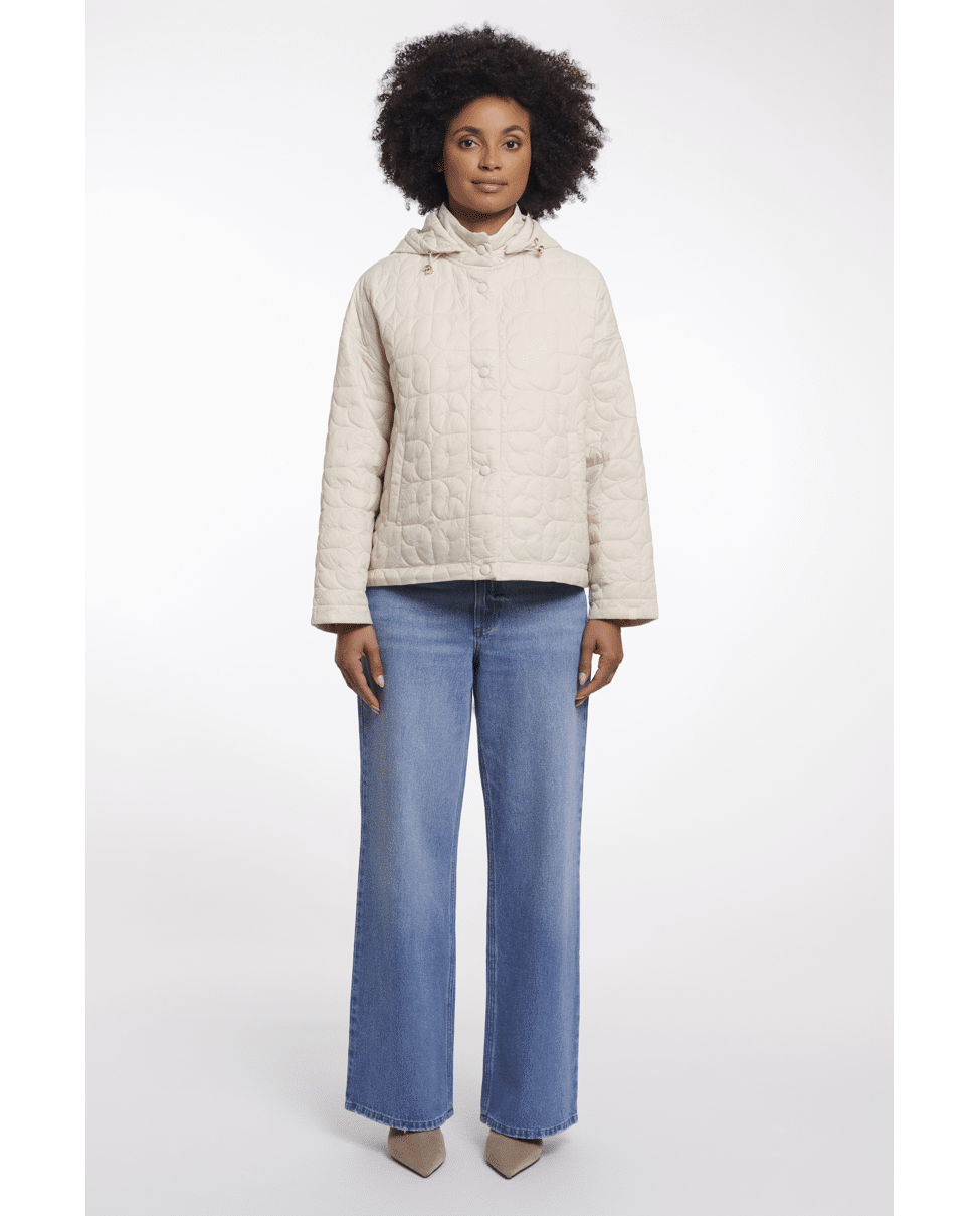 Het speelse stikselpatroon en de zachte vulling maken deze jas net even anders – praktisch en stijlvol in één.