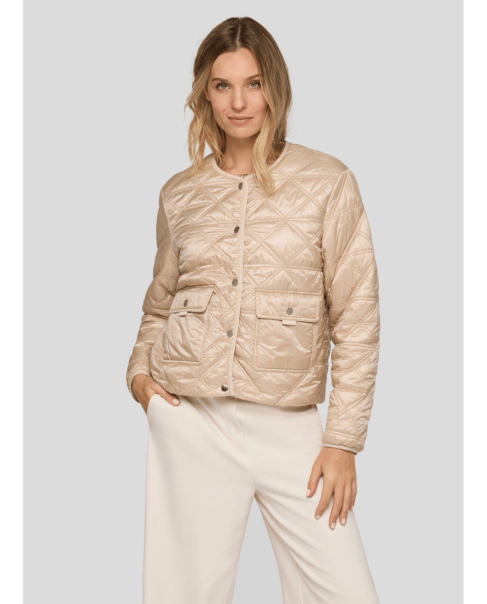 Dames jas van Rabe met doorgestikt dessin, drukknoopsluiting, klepzakken, ronde halslijn en lange mouwen