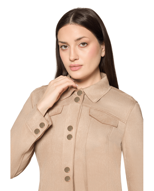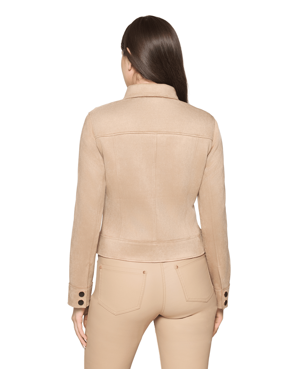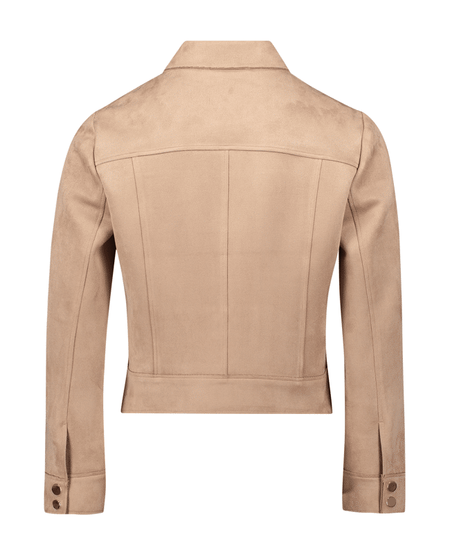 Dit korte jasje in suèdelook geeft elke outfit een stoere, vrouwelijke twist. Draag ‘m casual op een jeans of als zachte tegenhanger op een jurk.