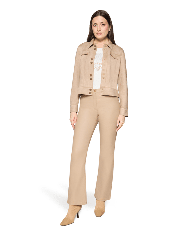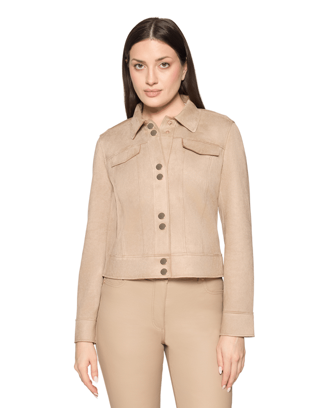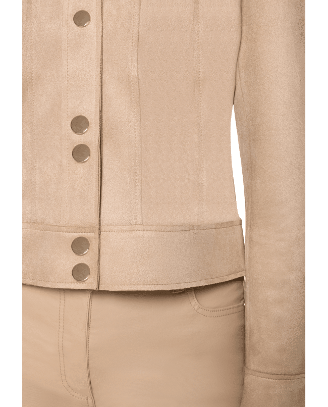 Dames jasje van Betty Barclay in suèdelook, klassieke kraag, klepzakken, drukknopen en lange mouwen