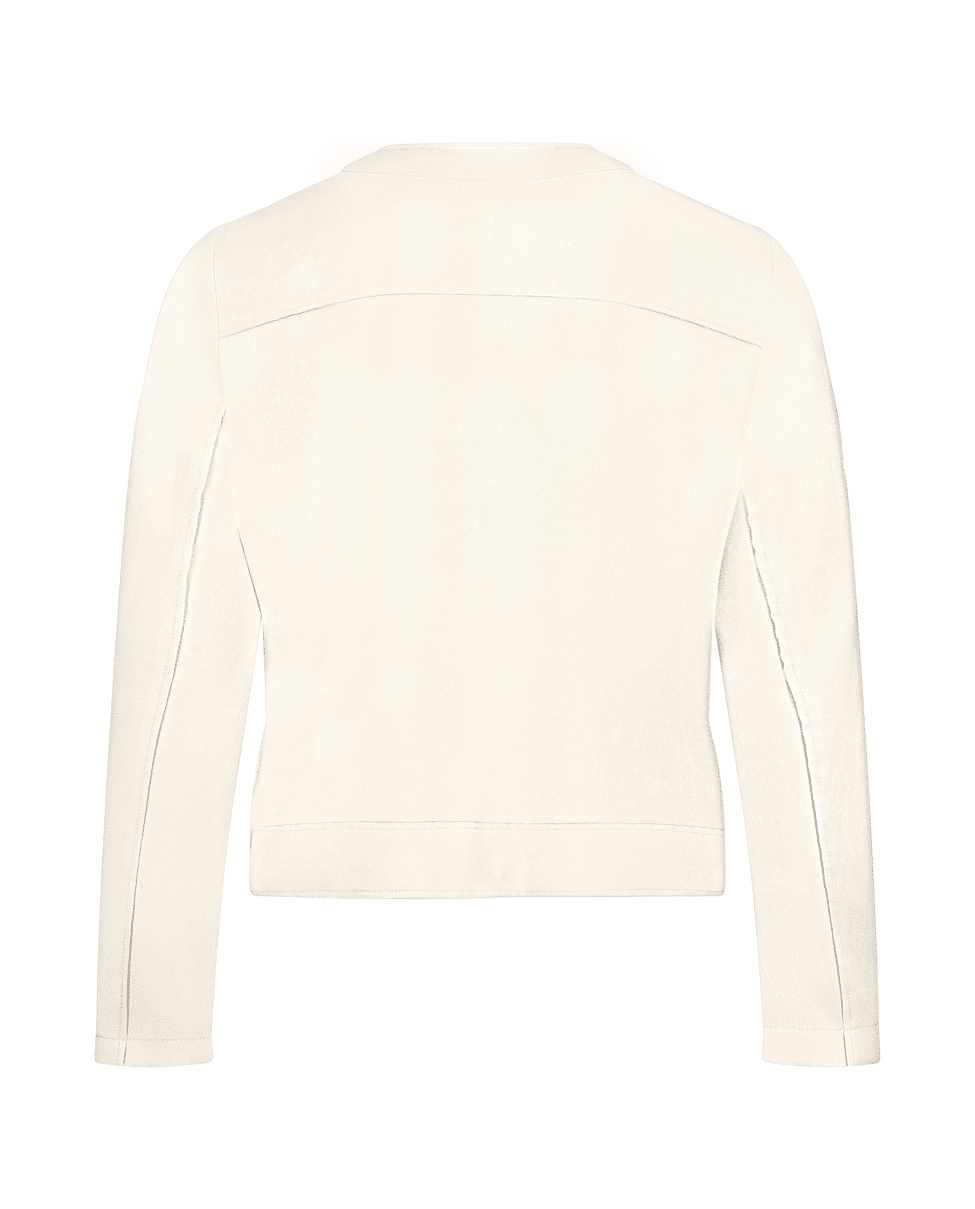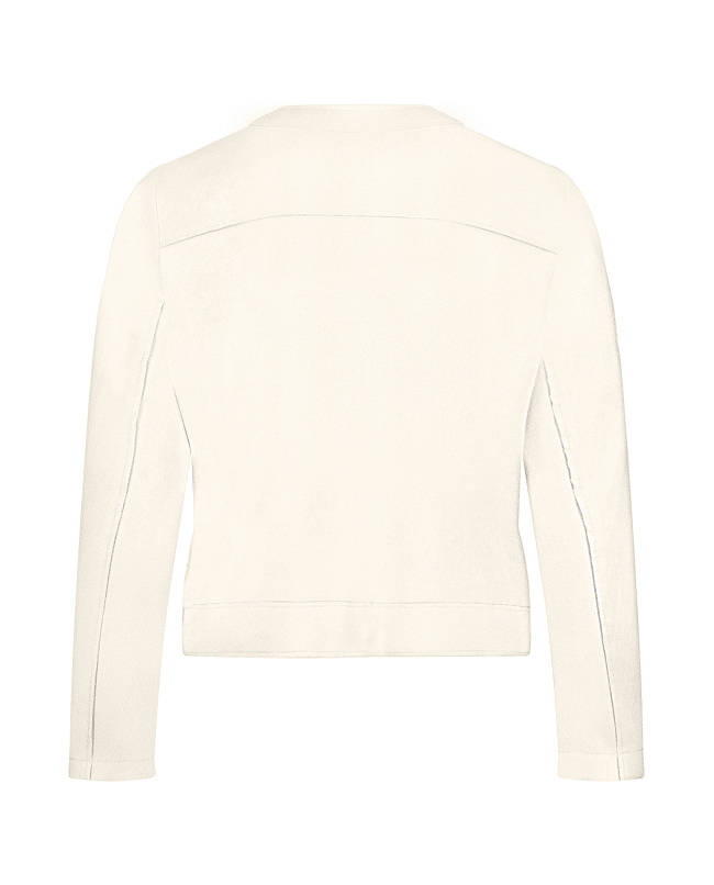 De combinatie van zachte suèdelook en opvallende studs maakt dit jasje een echte blikvanger. Elegant én eigentijds.