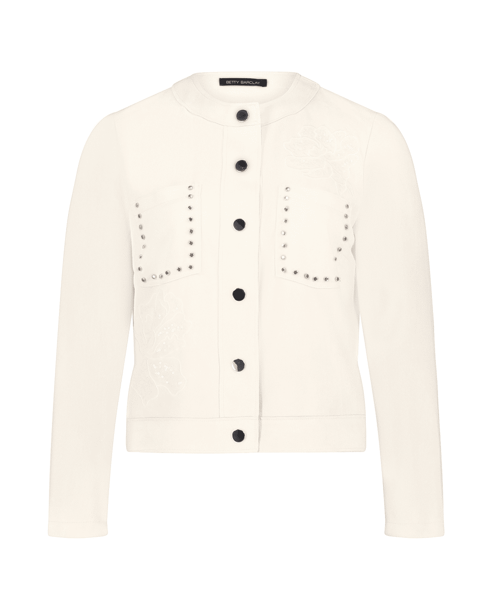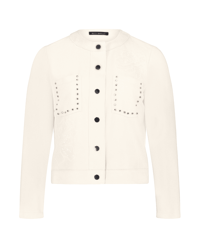 Dames jasje van Betty Barclay met suèdelook, studs, ronde halslijn, borstzakken, drukknopen en lange mouwen