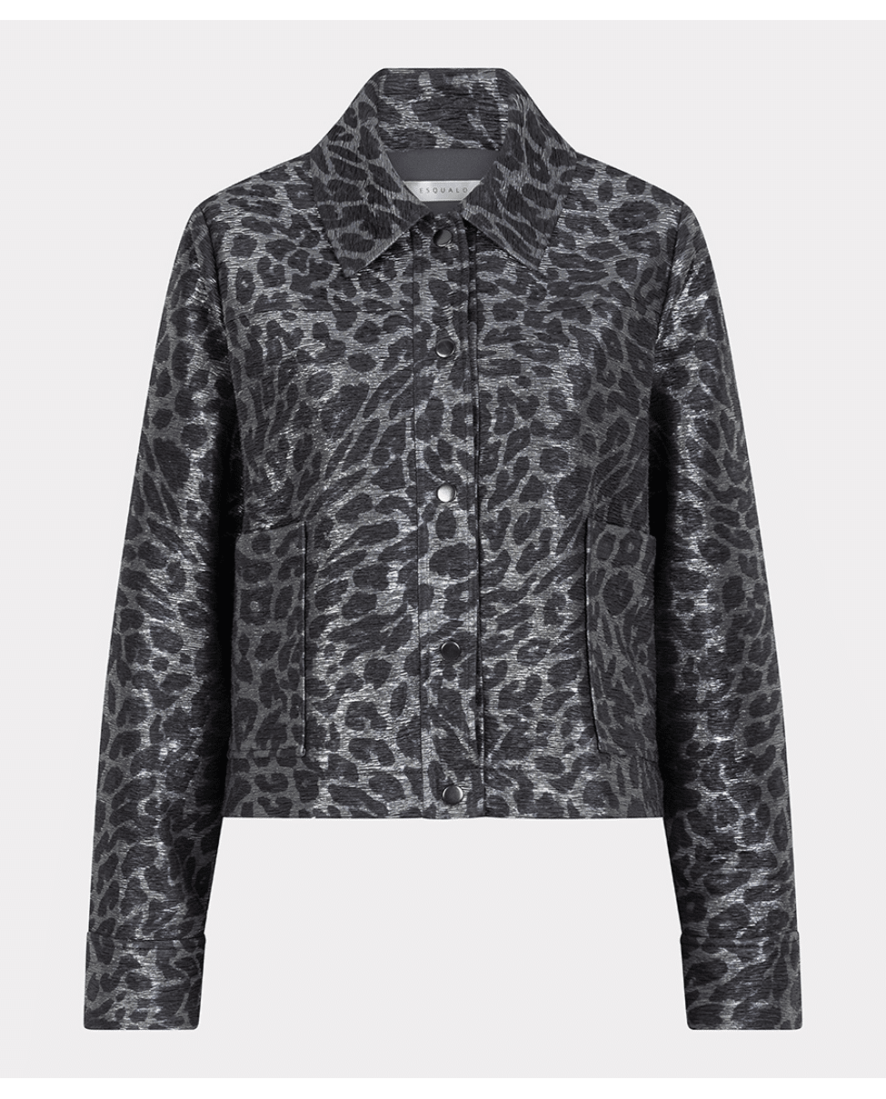 Dames jasje van Esqualo met luipaard print, opgestikte zakken en overhemdkraag