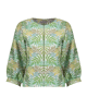De groene print en ronde hals zorgen voor een vrouwelijke uitstraling, terwijl de subtiele structuur in de stof zorgt voor extra diepte.