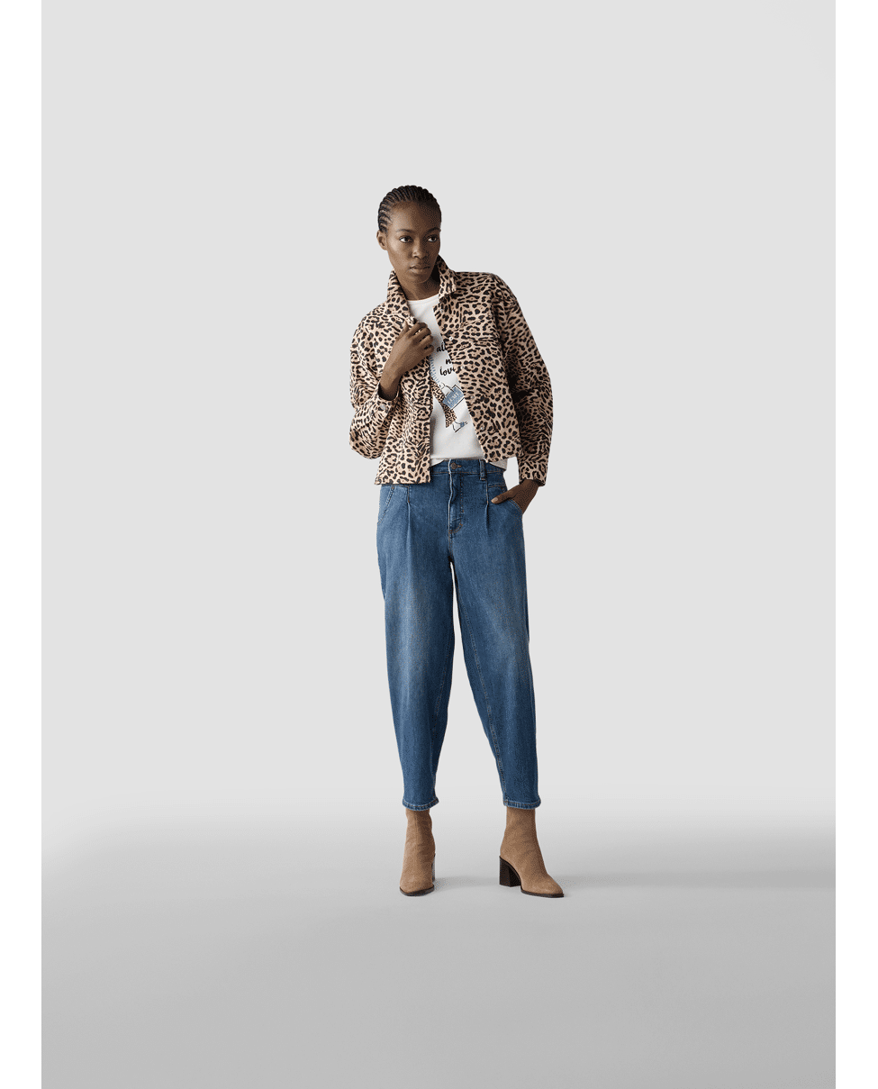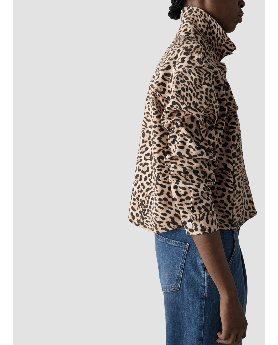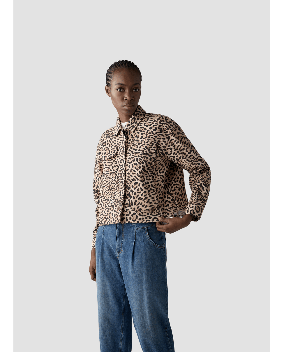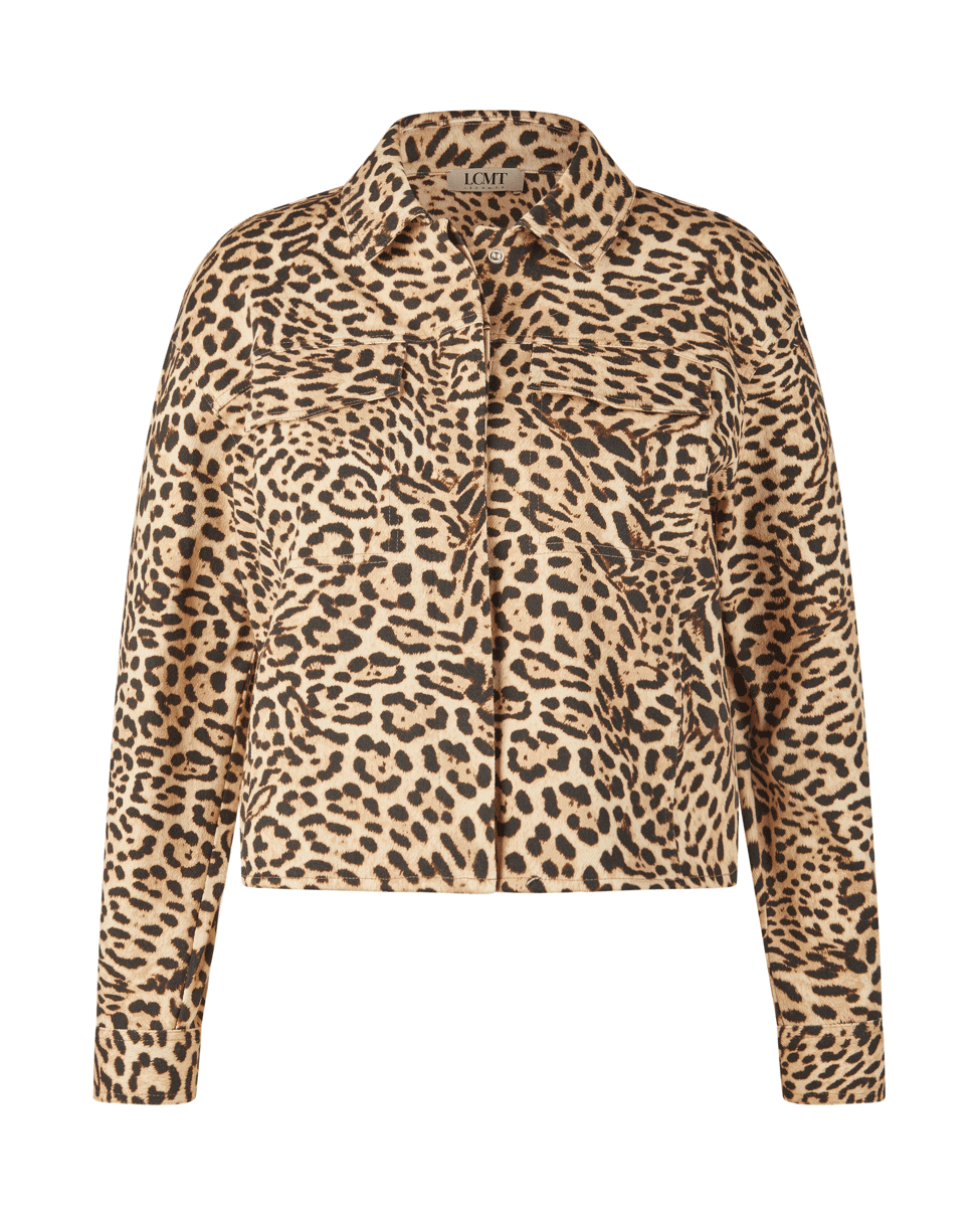 Dames jasje van LeComte met luipaard print, klassieke kraag, verborgen drukknoopsluiting, borstzakken en lange mouwen