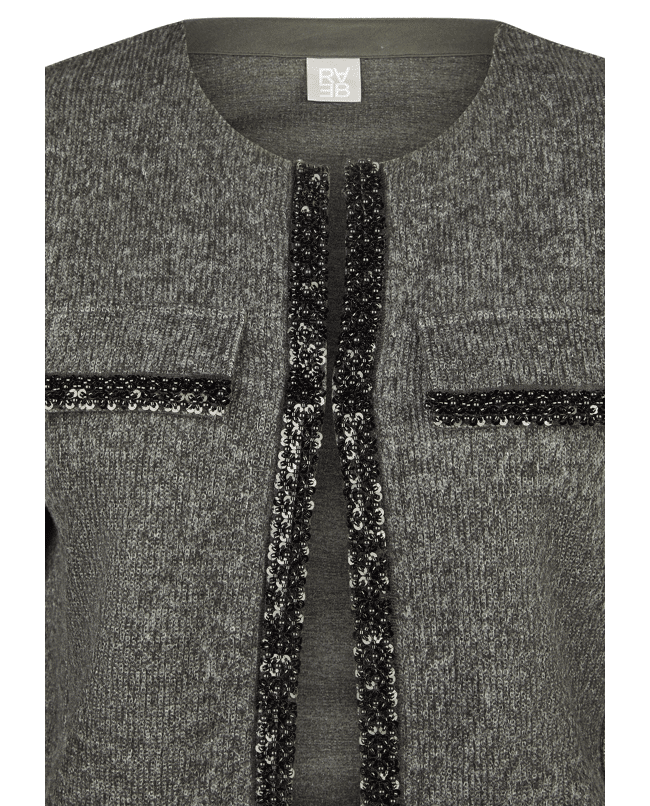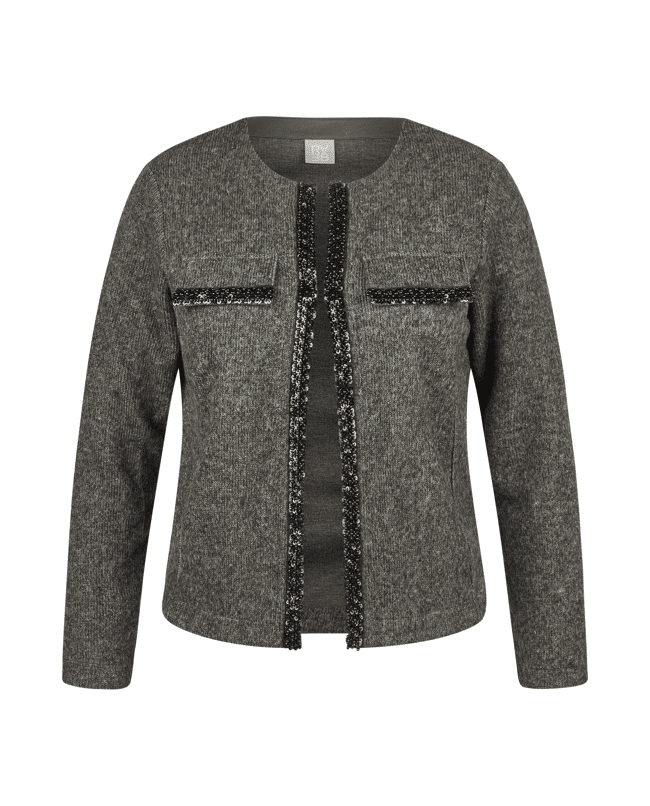 Dit binnenjasje met ronde hals en sierbies straalt klassieke klasse uit. De franjes en subtiele glansdetails geven het een chique, vrouwelijke twist.