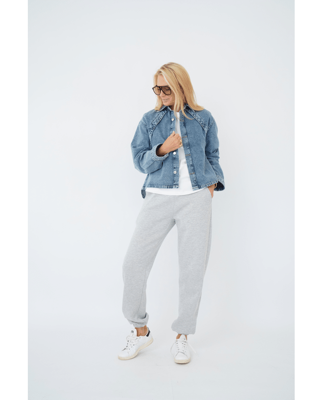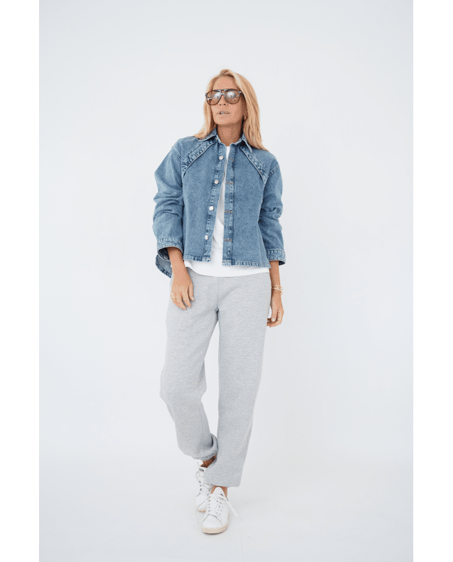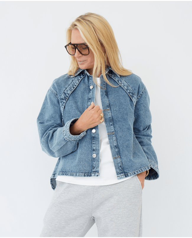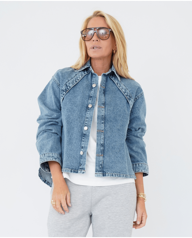 De combinatie van een klassieke denim look met vernieuwende details zoals het schouderaccent en de high-low zoom maakt dit jasje stijlvol én comfortabel.