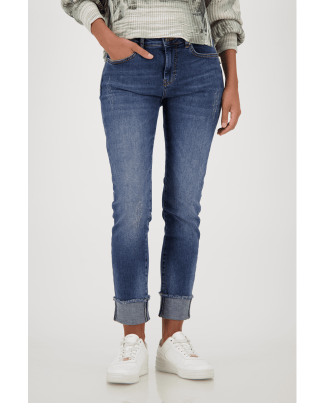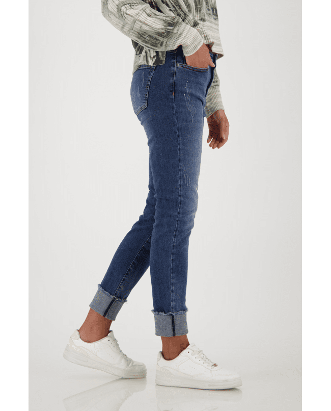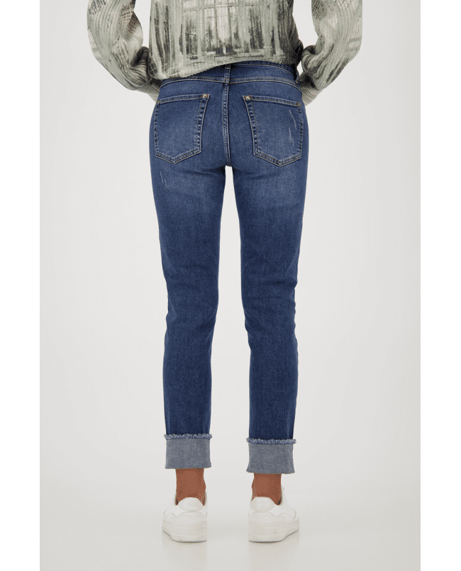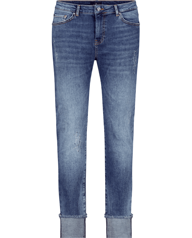 De opgerolde zoom geeft deze jeans een nonchalante twist. De subtiele strass-steentjes zorgen voor een vrouwelijke touch zonder overdreven te zijn. Een fijne basic met karakter.