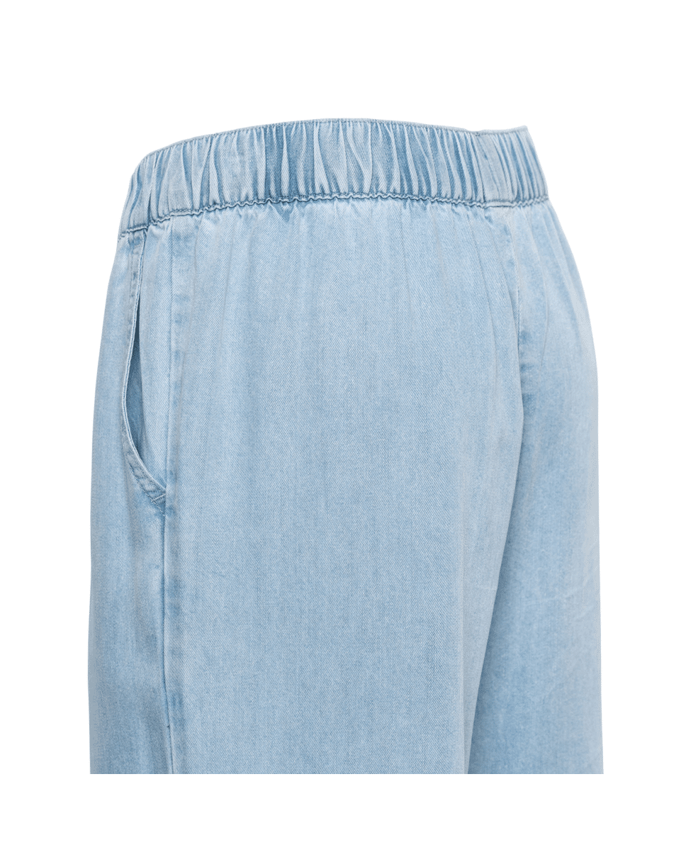Dit lichtblauwe dames pantalon van lyocell heeft een ontspannen en moderne uitstraling. De wijde pijpen en zachte denimlook maken deze broek perfect voor een comfortabele en stijlvolle lente- of zomeroutfit. Mooi te combineren met een blouse, knit of het bijpassende jasje voor een complete set.