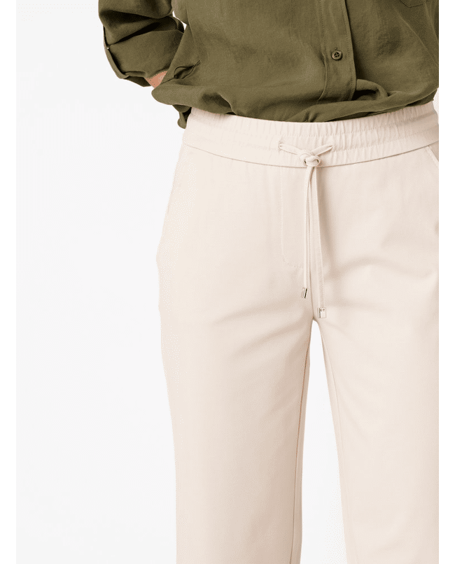 Valt comfortabel op maat met een ontspannen fit. De elastische taille en lichte stretch zorgen voor bewegingsvrijheid.