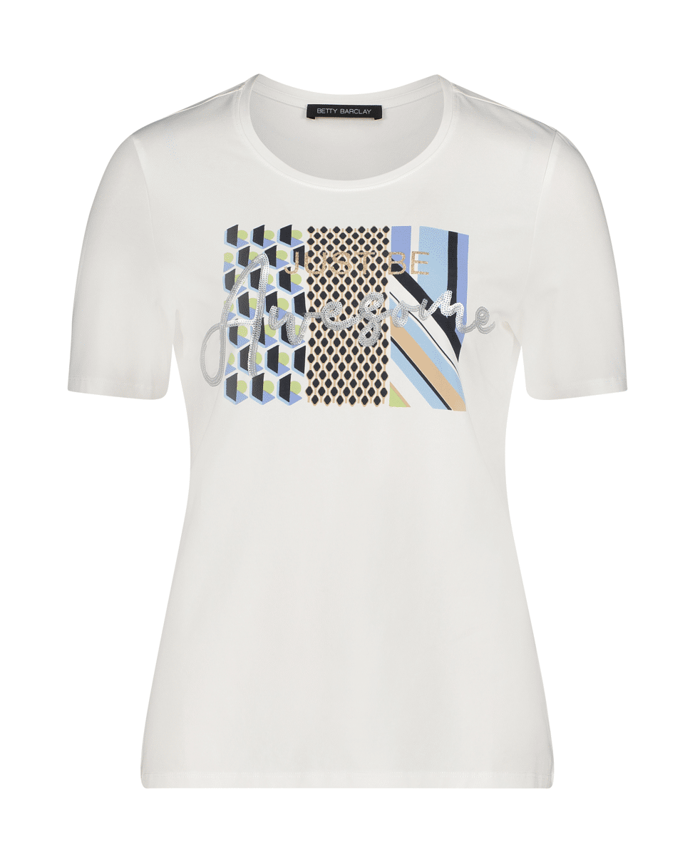 Dames jersey shirt van Betty Barclay met grafische prints op de borst, ronde halslijn en korte mouwen