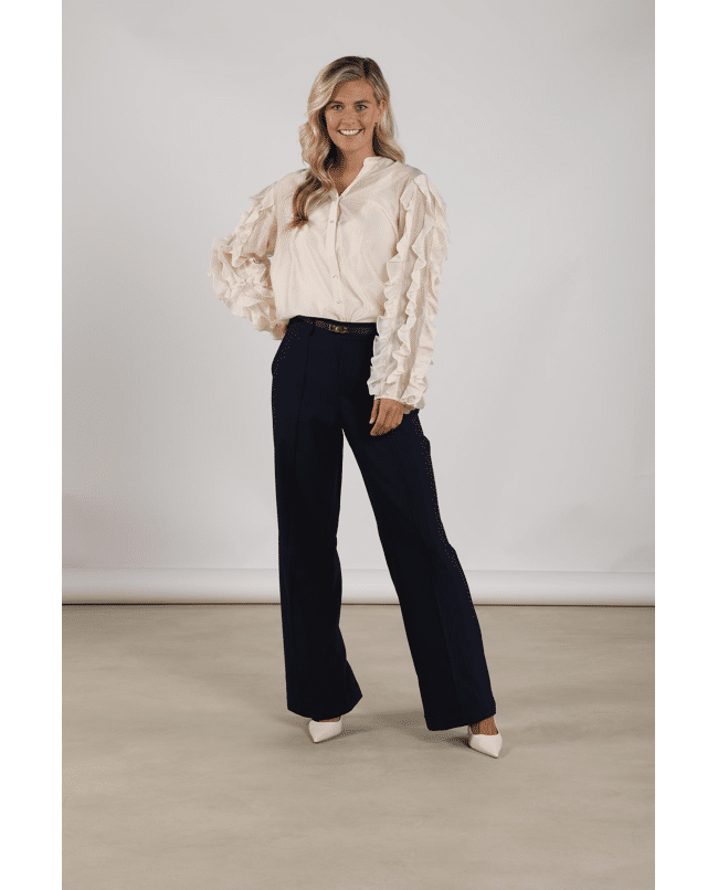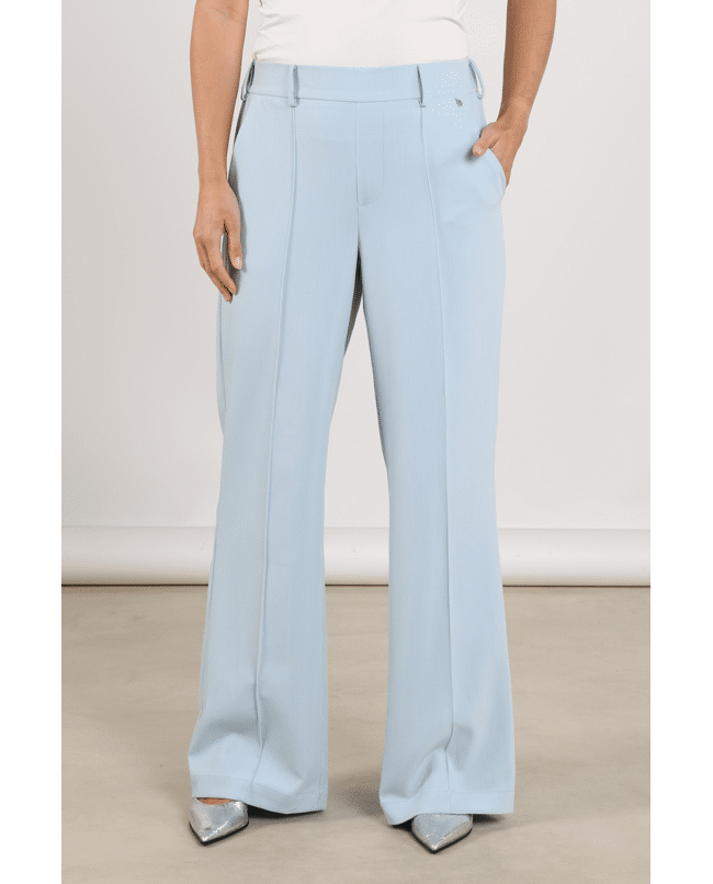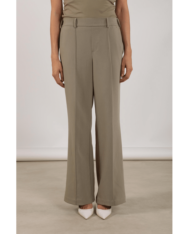 Jill Pants – Damesbroek van Nukus met deelnaad op de wijde pijpen, steekzakken en riemlussen