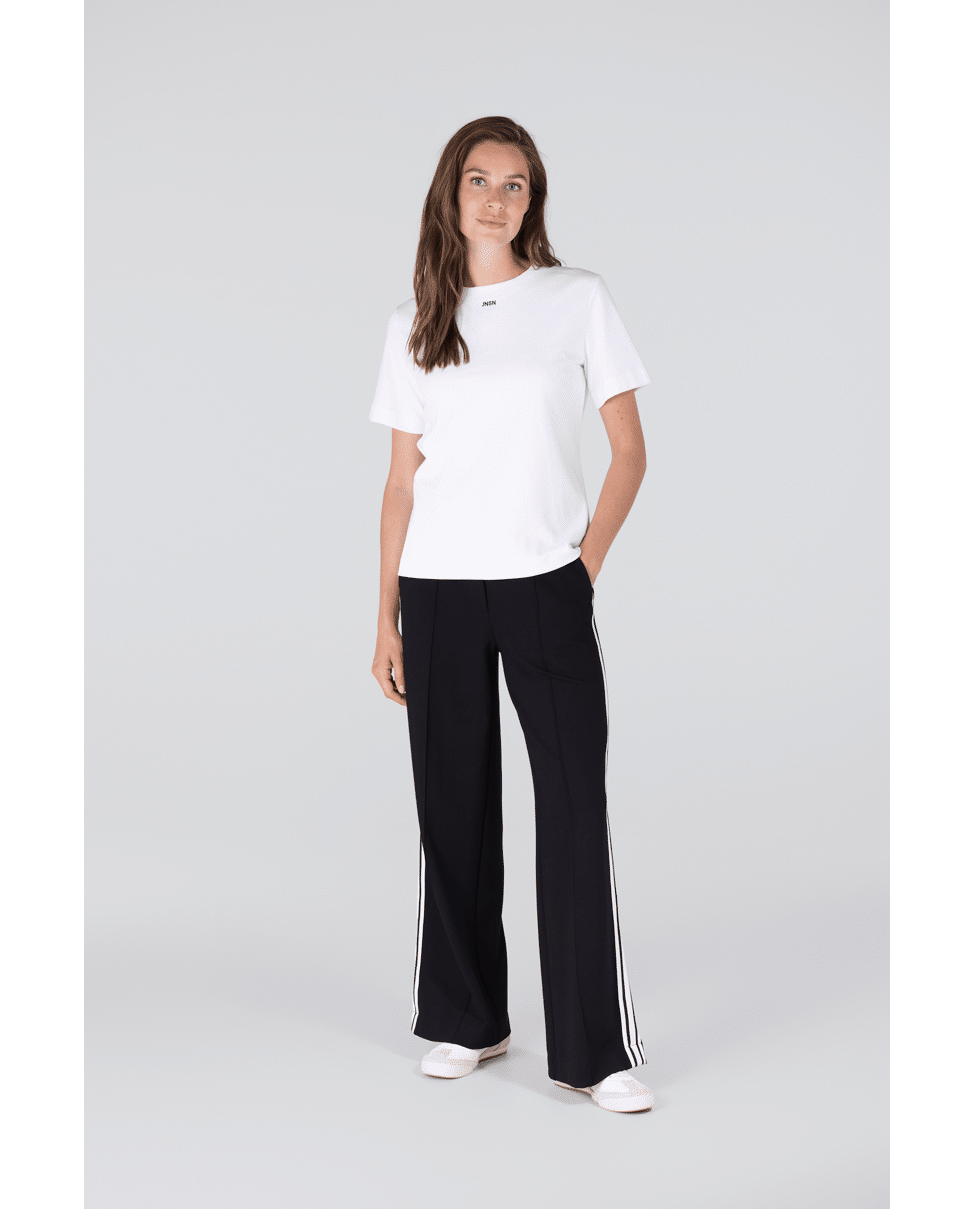 Een basic met een twist: dit witte T-shirt van Jansen is gemaakt van zacht katoen en afgewerkt met een subtiel geborduurd JNSN-logo bij de halslijn. Ideaal voor elke dag, makkelijk te combineren met jeans of blazers.