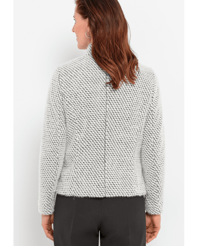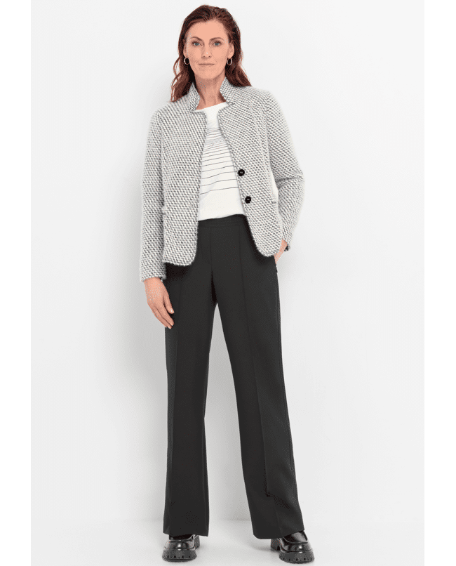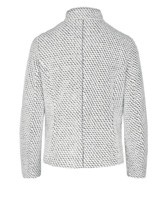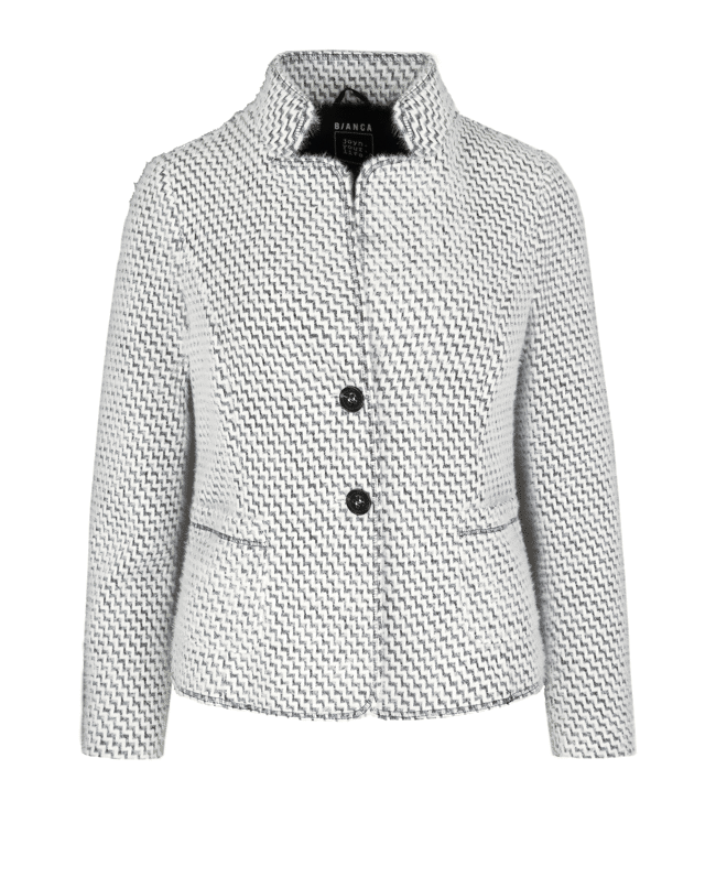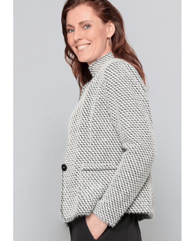 Het zwart-witte dessin en de cleane sluiting geven deze blazer een krachtige uitstraling zonder poespas.