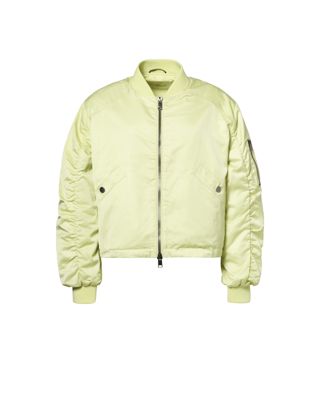 Deze korte bomber in lime is een frisse blikvanger met een sportieve edge. Perfect voor lentedagen waarop je outfit wel wat pit kan gebruiken.
