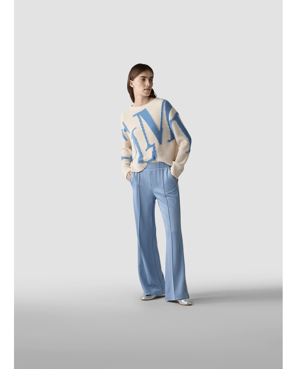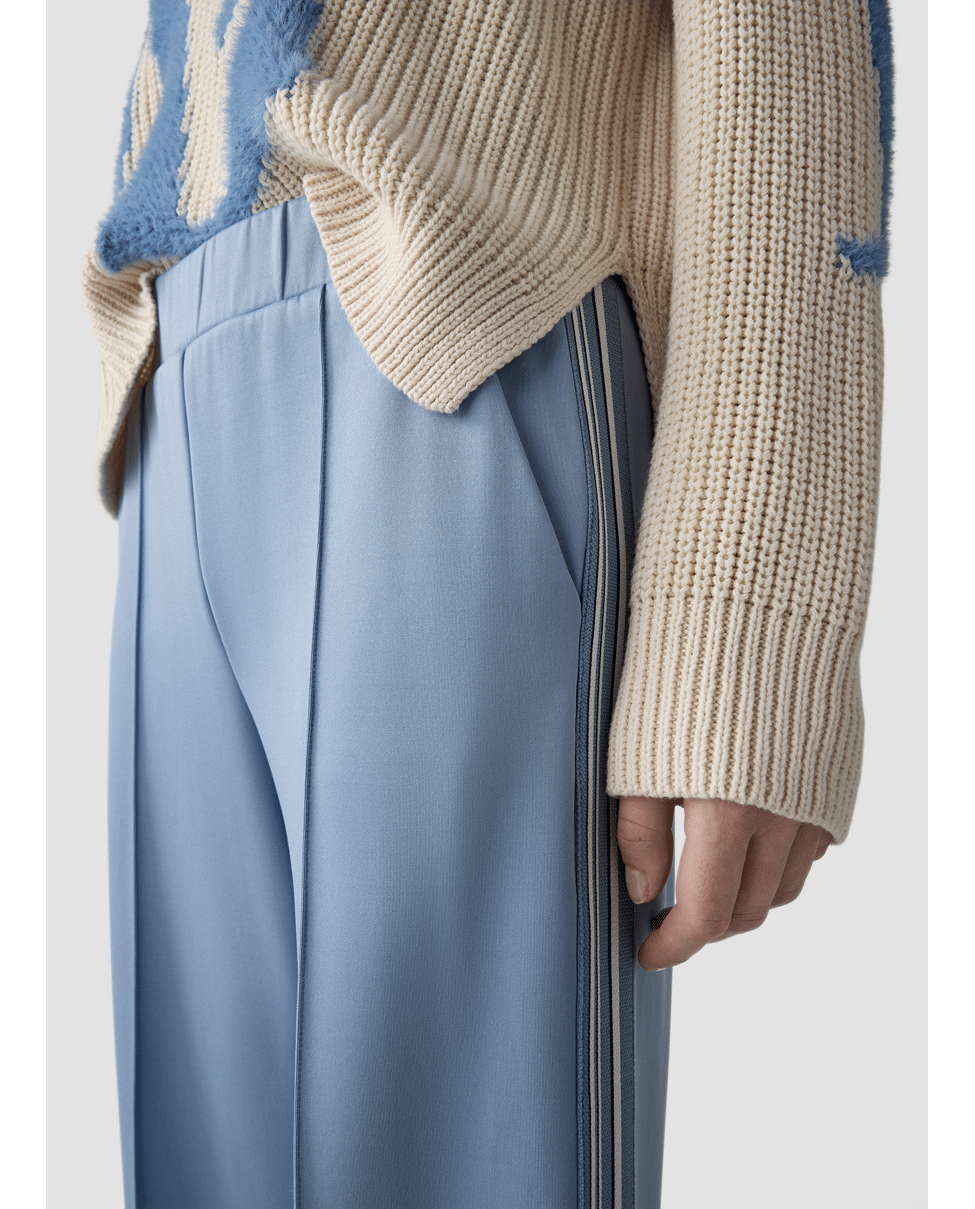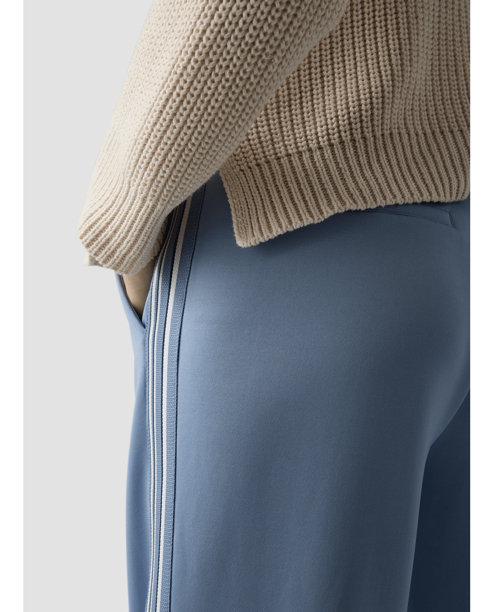 Dames joggerbroek van LeComte met contrasterende bies op de zijnaad, steekzakken, rechte pijpen en elastiek in de taille
