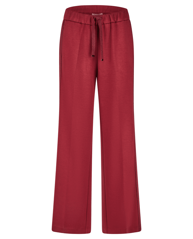Dames joggerbroek van LeComte met glinsterende bies, steekzakken, rechte pijpen en elastiek in de taille