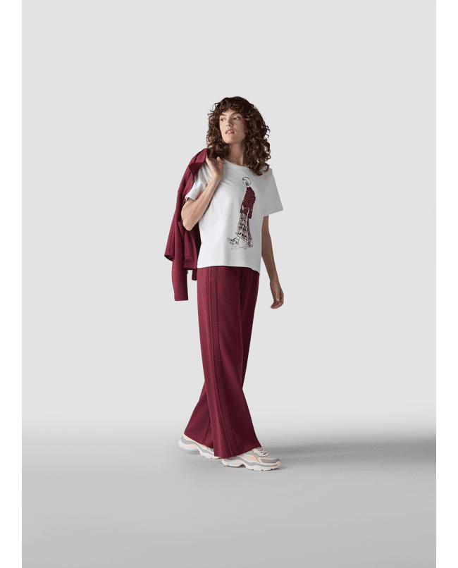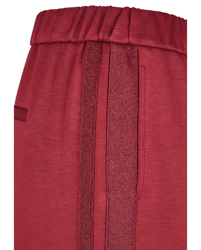 De glinsterende bies aan de zijkant geeft deze relaxte broek nét dat beetje extra flair.