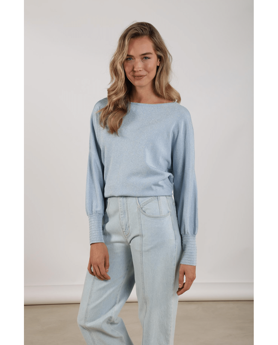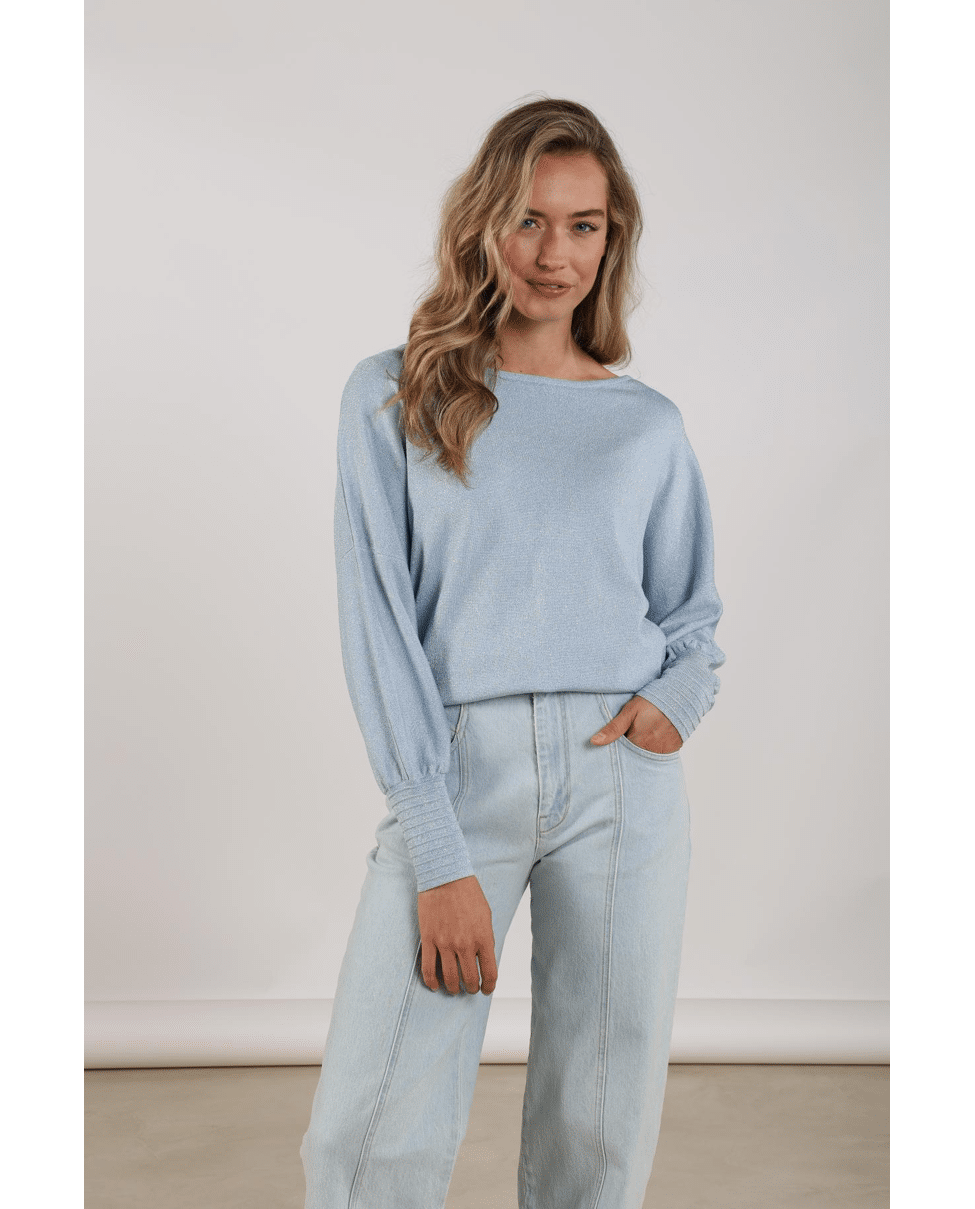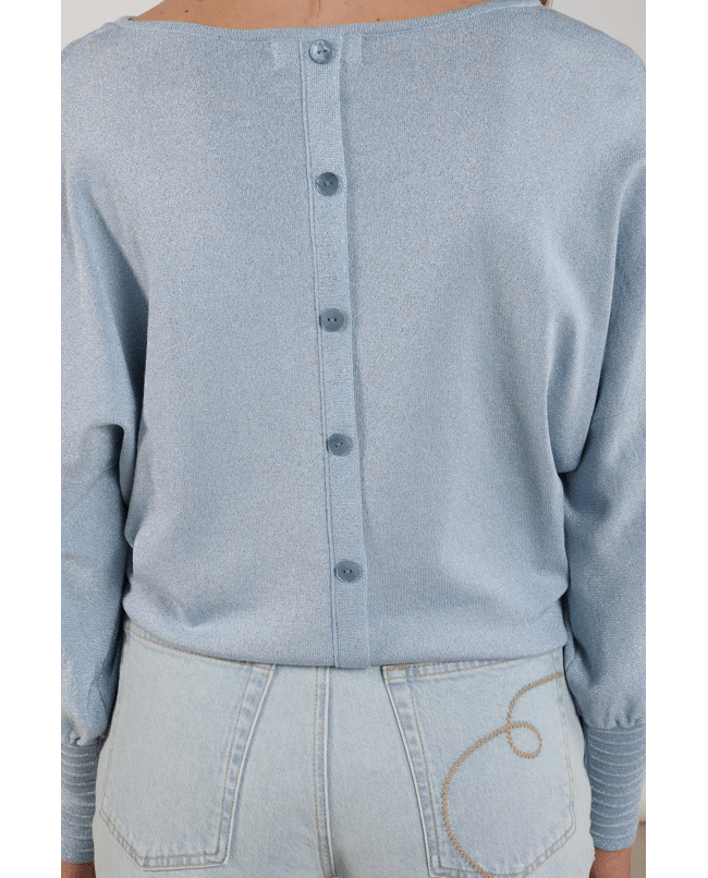 Jorien Pullover Lurex – Gebreide trui van Nukus met knopen op de rug