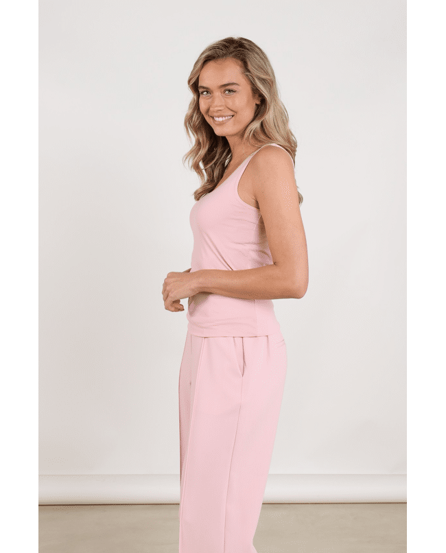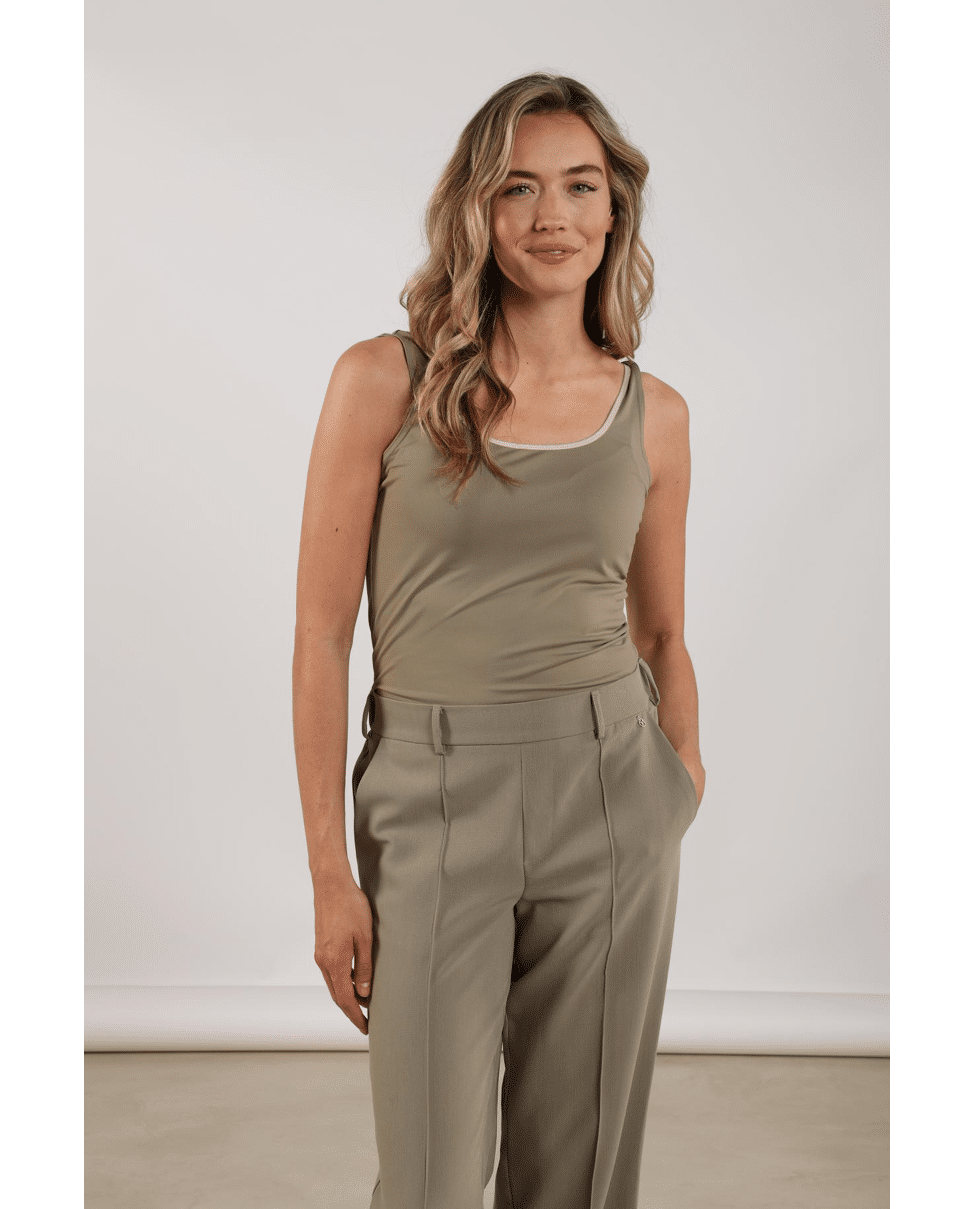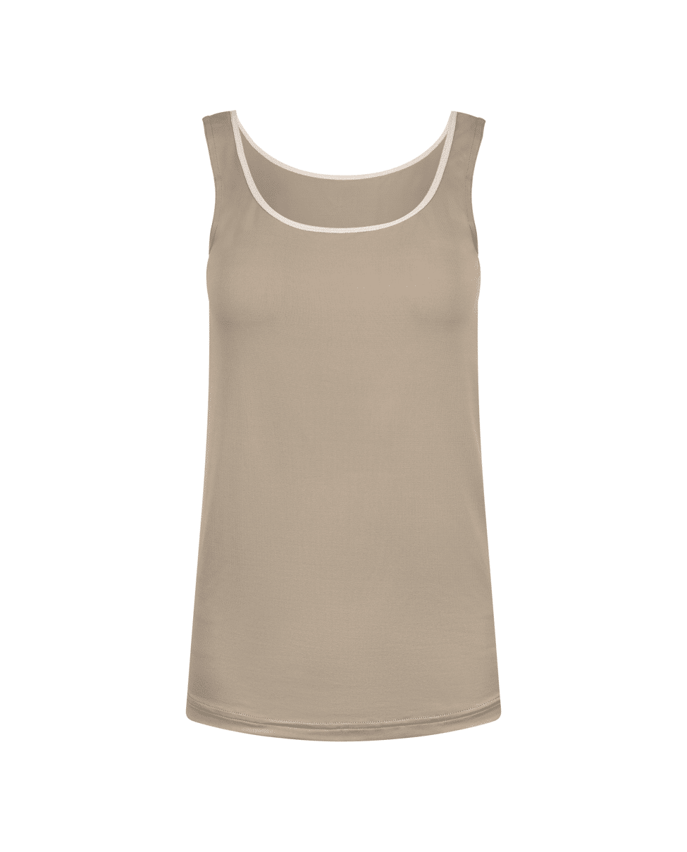 Een zachte basic met een vrouwelijke touch: dit singlet is ideaal voor zomerse dagen of als laagje onder een blouse.