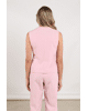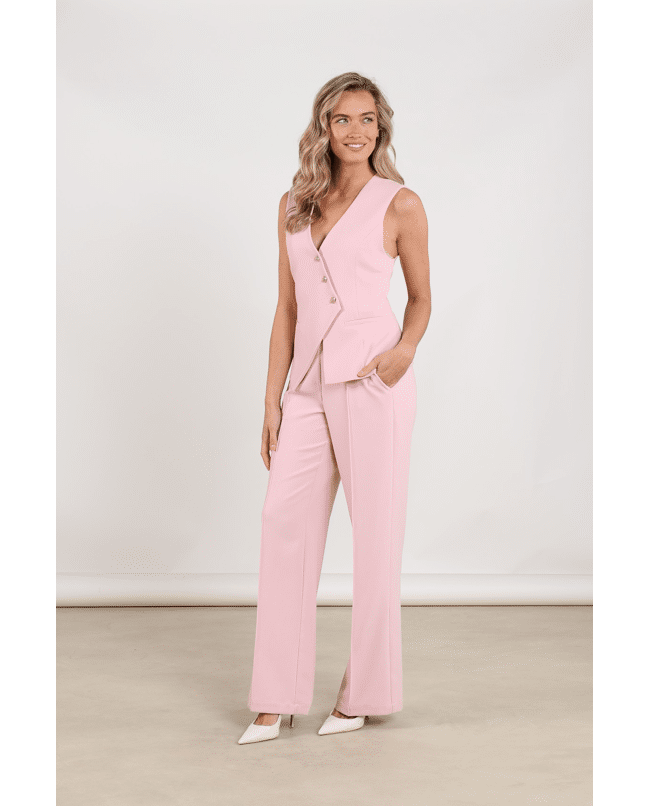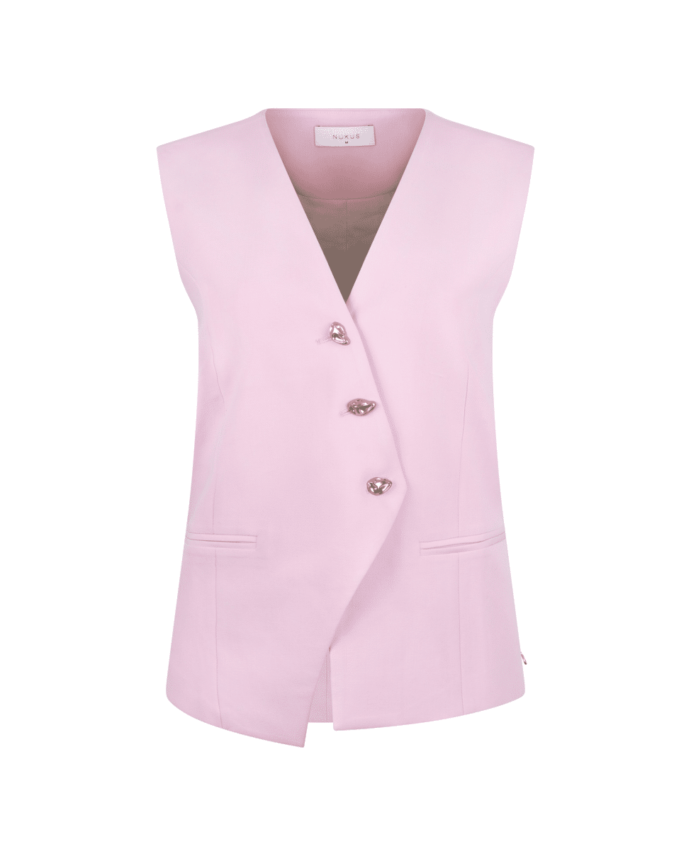 Dit blushkleurige gilet met opvallende knopen is een stijlvolle aanvulling op je zomeroutfit. Draag 'm als statement piece of als onderdeel van een co-ord set.