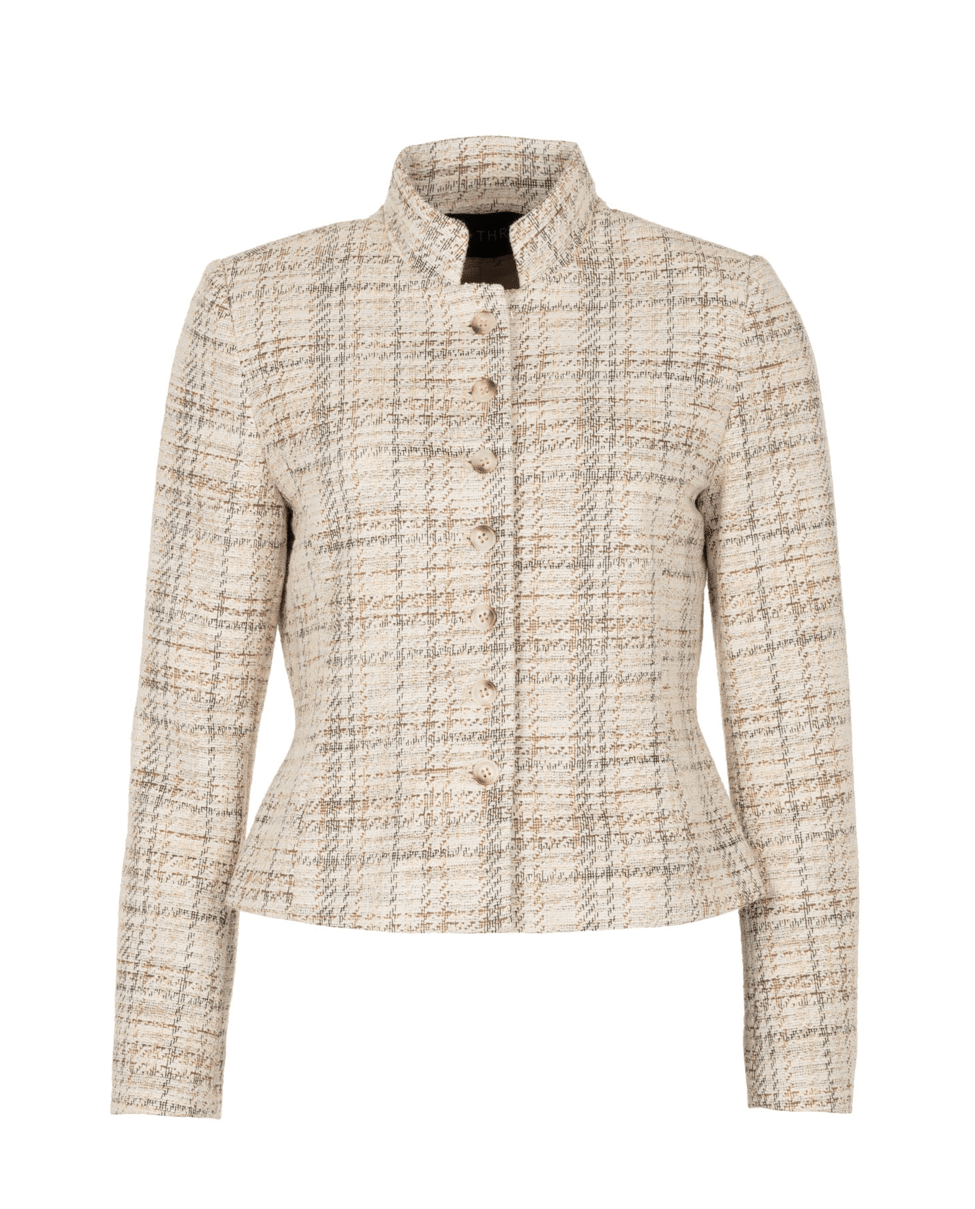 Juliet - Getailleerd dames jasje van B Three met geruit geweven dessin, opstaande kraag en knoopsluiting