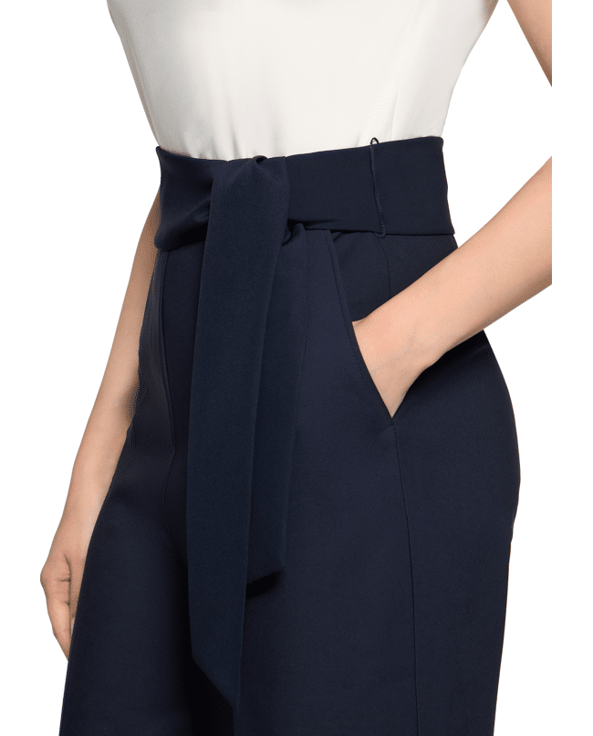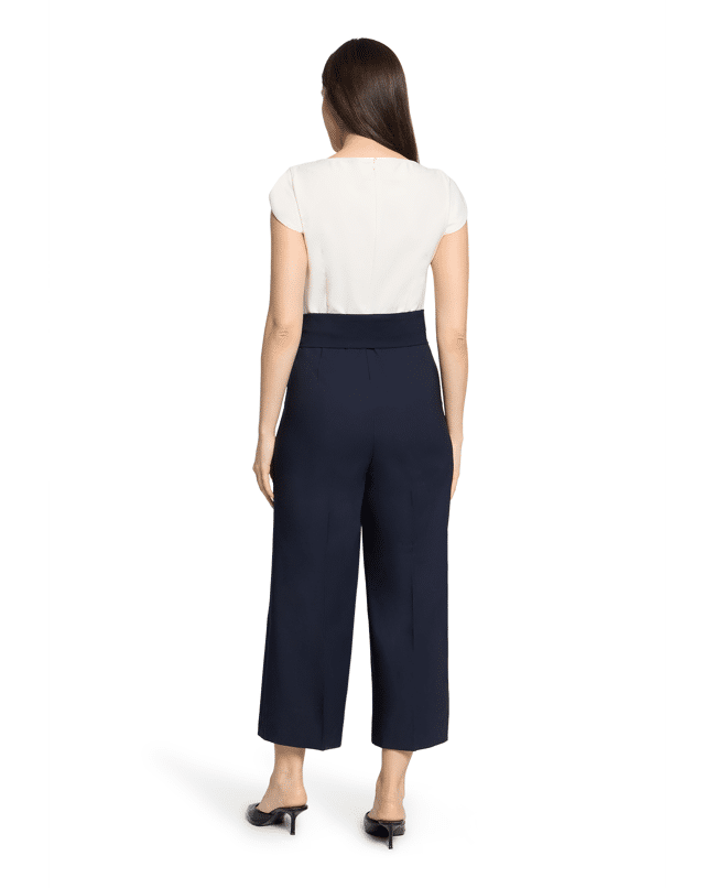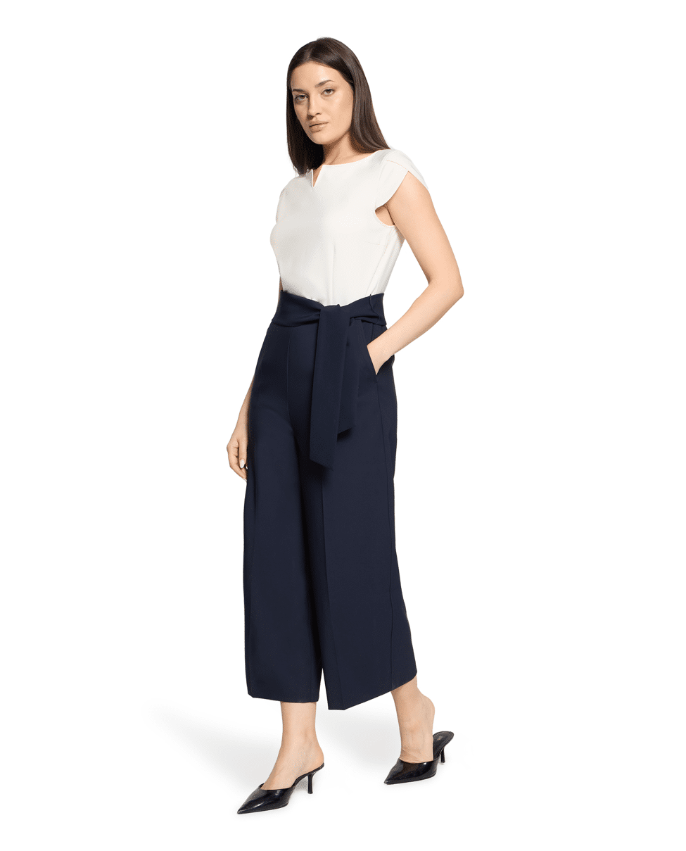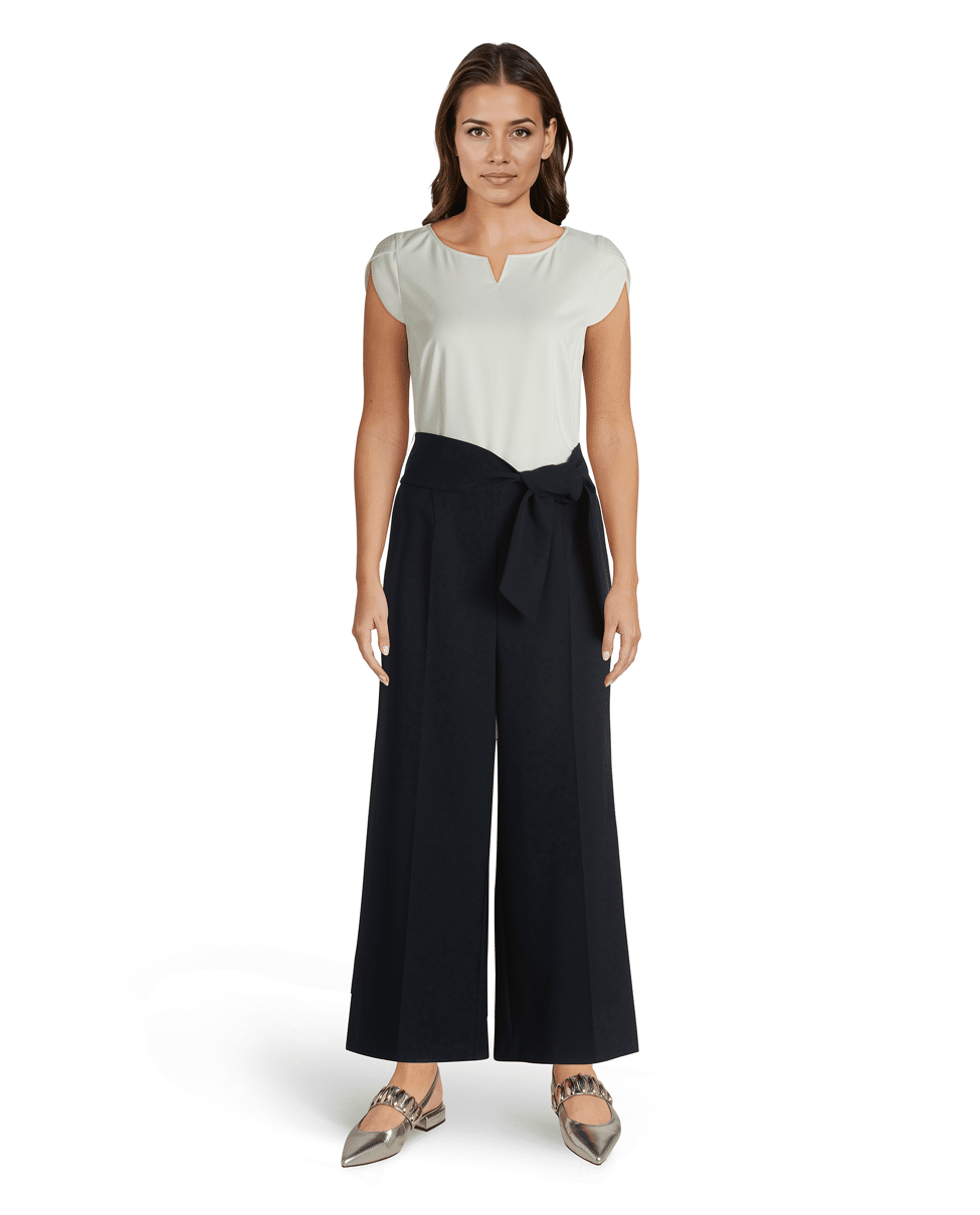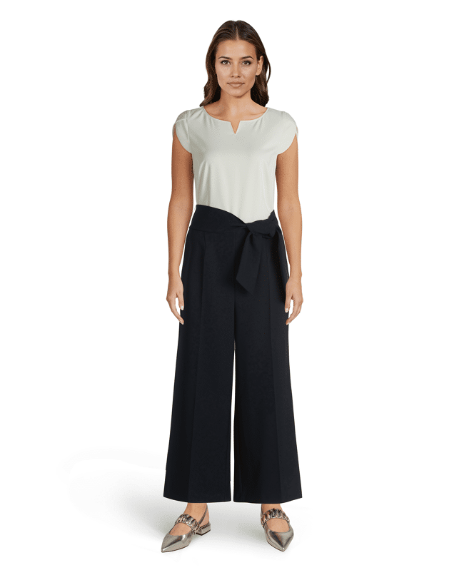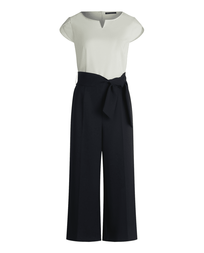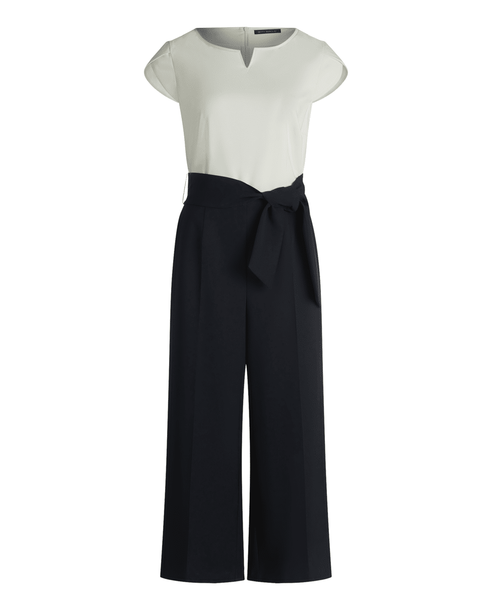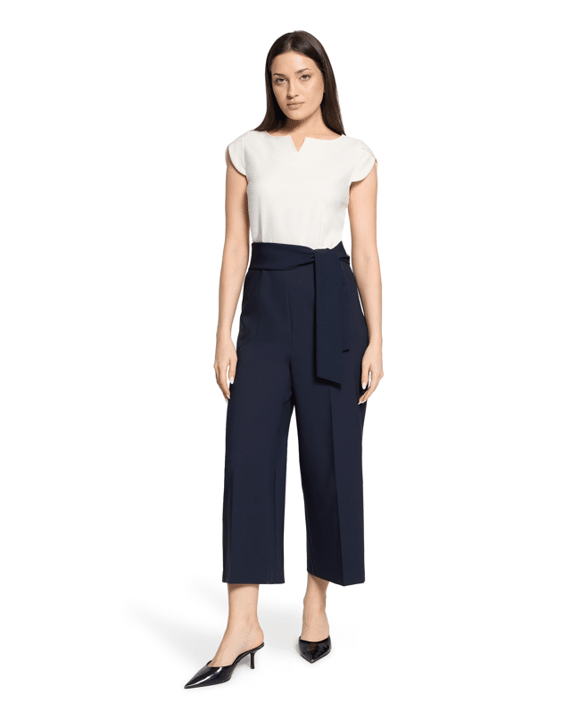 Jumpsuit van Betty Barclay met strikceintuur, ronde hals met V-inkeping, 7/8 lengte en middelhoge taille