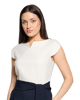 De subtiele V-split bij de hals en de kleurblokken zorgen voor een krachtige, maar vrouwelijke look.