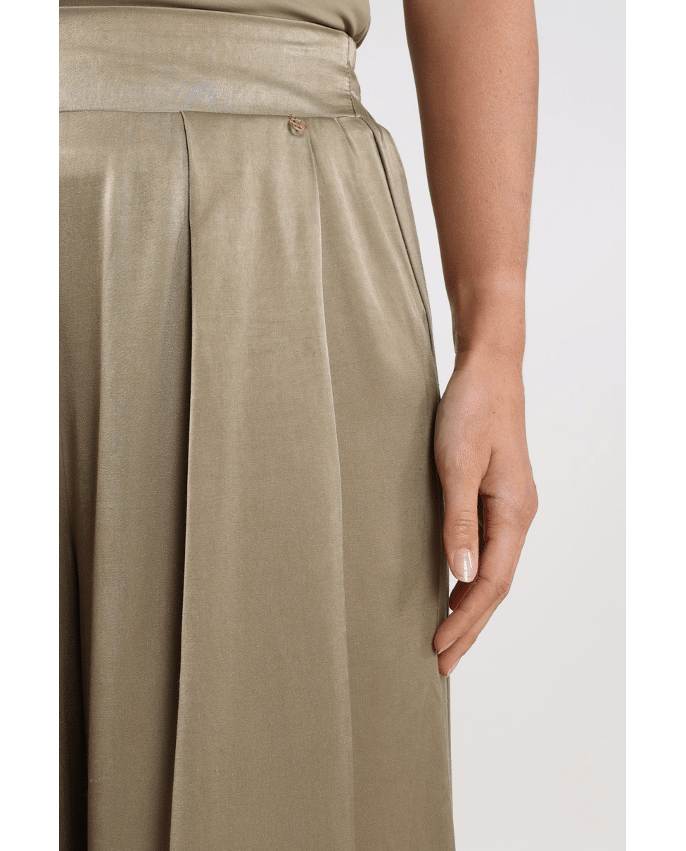 De satijnachtige glans en flatterende plooien geven deze broek een luxe uitstraling zonder in te boeten op draagcomfort.
