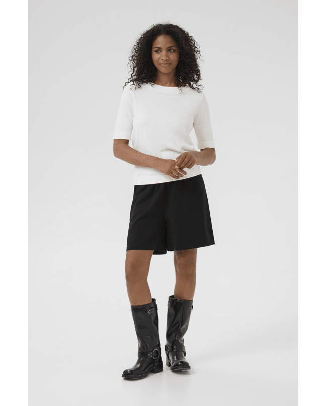 Een fijngebreide trui met boothals en korte mouwen. Deze tijdloze basic voelt zacht aan en is perfect voor gelaagde looks of frisse lentedagen.