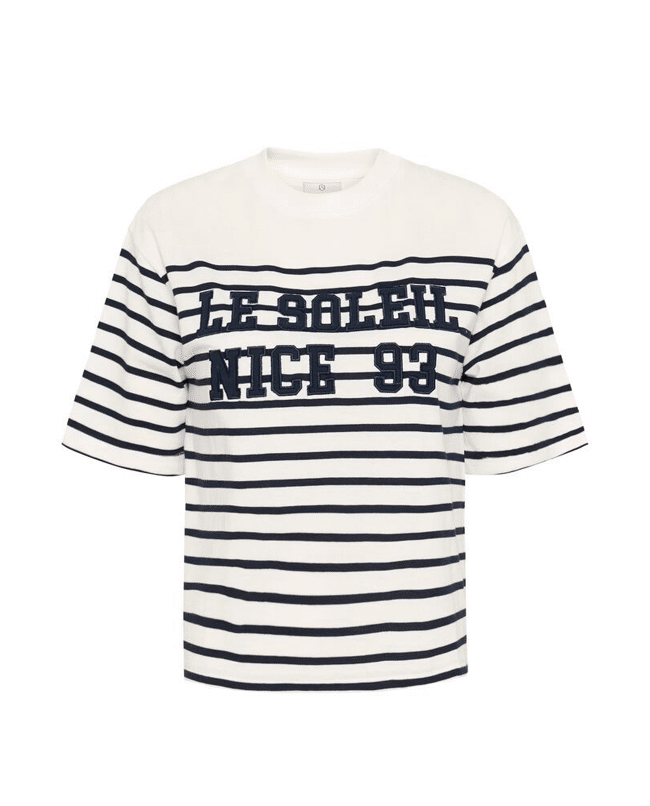 De ‘Le Soleil’ print geeft dit T-shirt een zomerse, Franse touch die direct opvalt zonder druk te zijn.