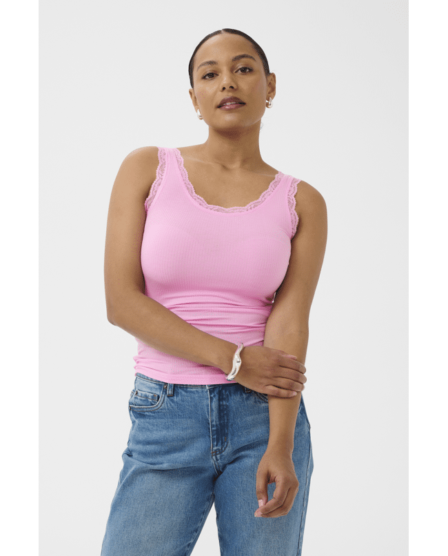 De slanke pasvorm en mouwloze snit maken deze top tot een tijdloze essential met veel draaggemak.