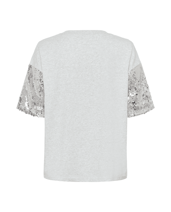 Een casual T-shirt met feestelijke twist. De pailletten op de mouwen geven dit oversized model net dat beetje extra flair.
