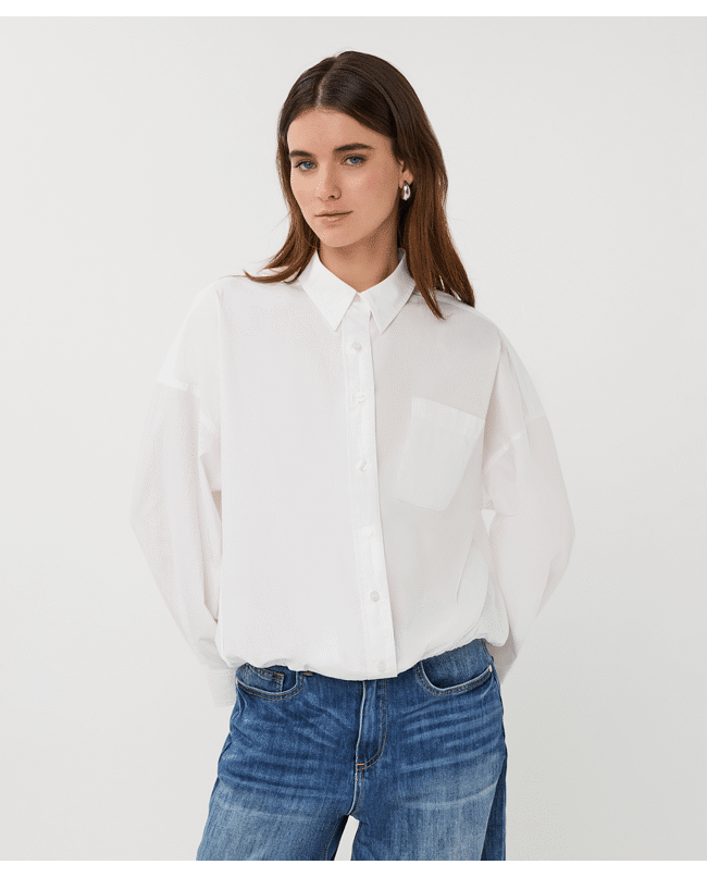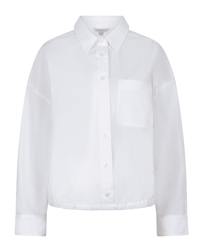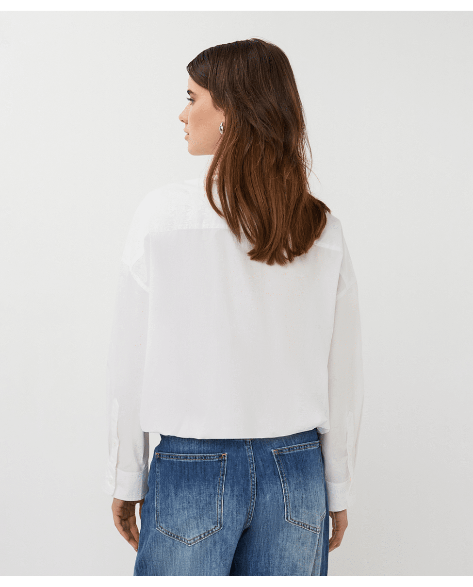 Frisse cropped blouse van luchtig katoenpoplin in off white. Deze blouse heeft een moderne, korte snit en is ideaal te combineren met een high-waist broek of rok – een must-have voor het voorjaar.