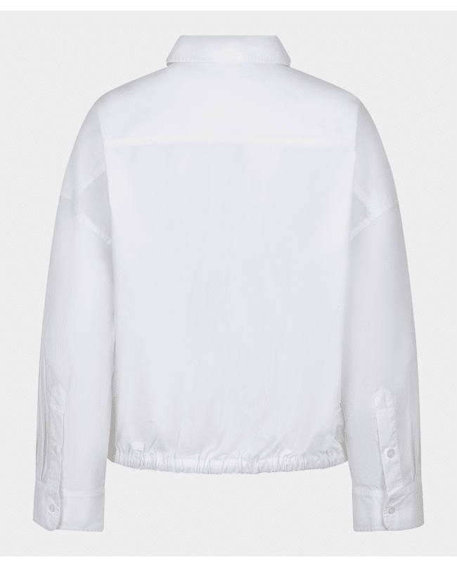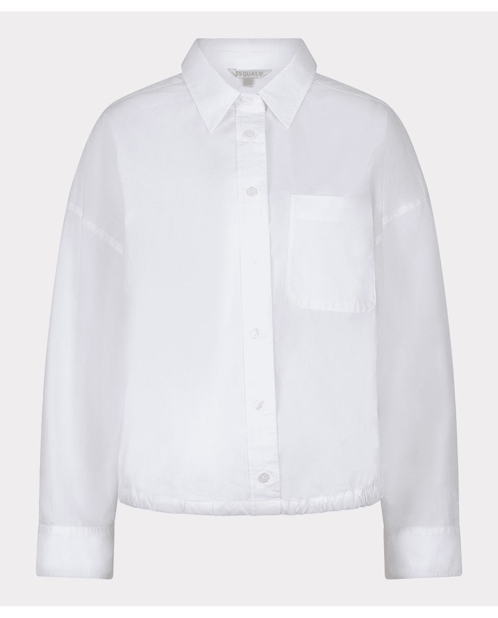 Katoenen damesblouse van Esqualo met elastiek in de zoom, lange mouwen, witte klassieke kraag en knoopsluiting