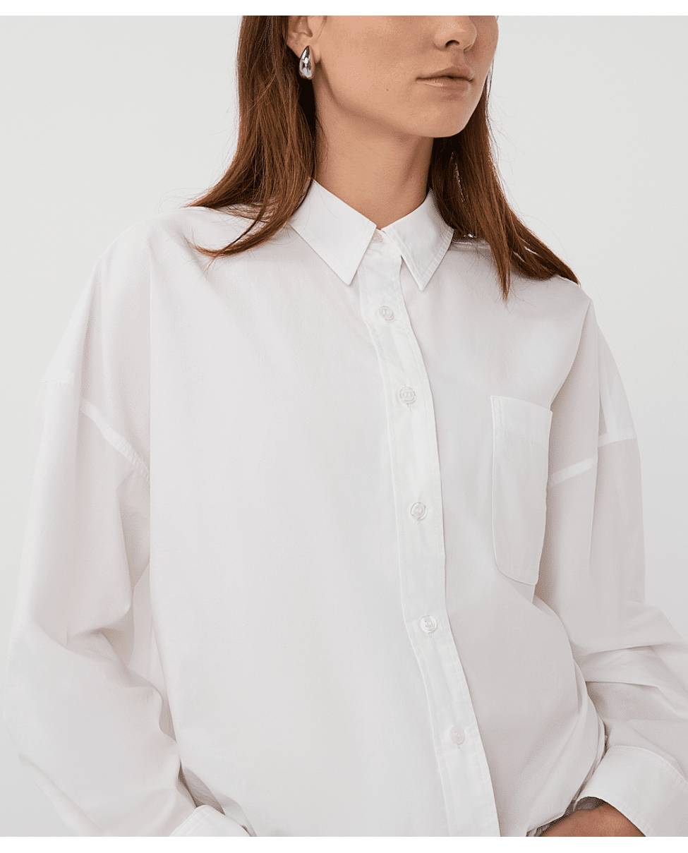 De cleane look en kortere lengte maken deze blouse stoer én vrouwelijk – minimalistisch met karakter.