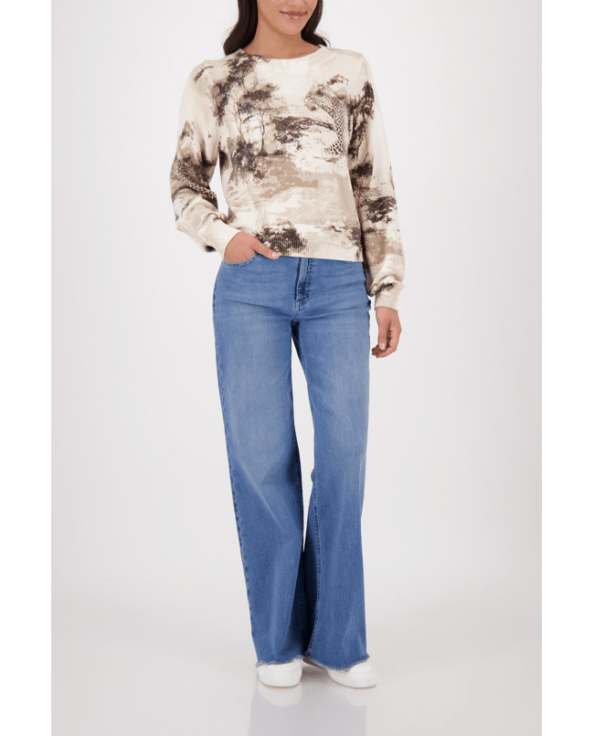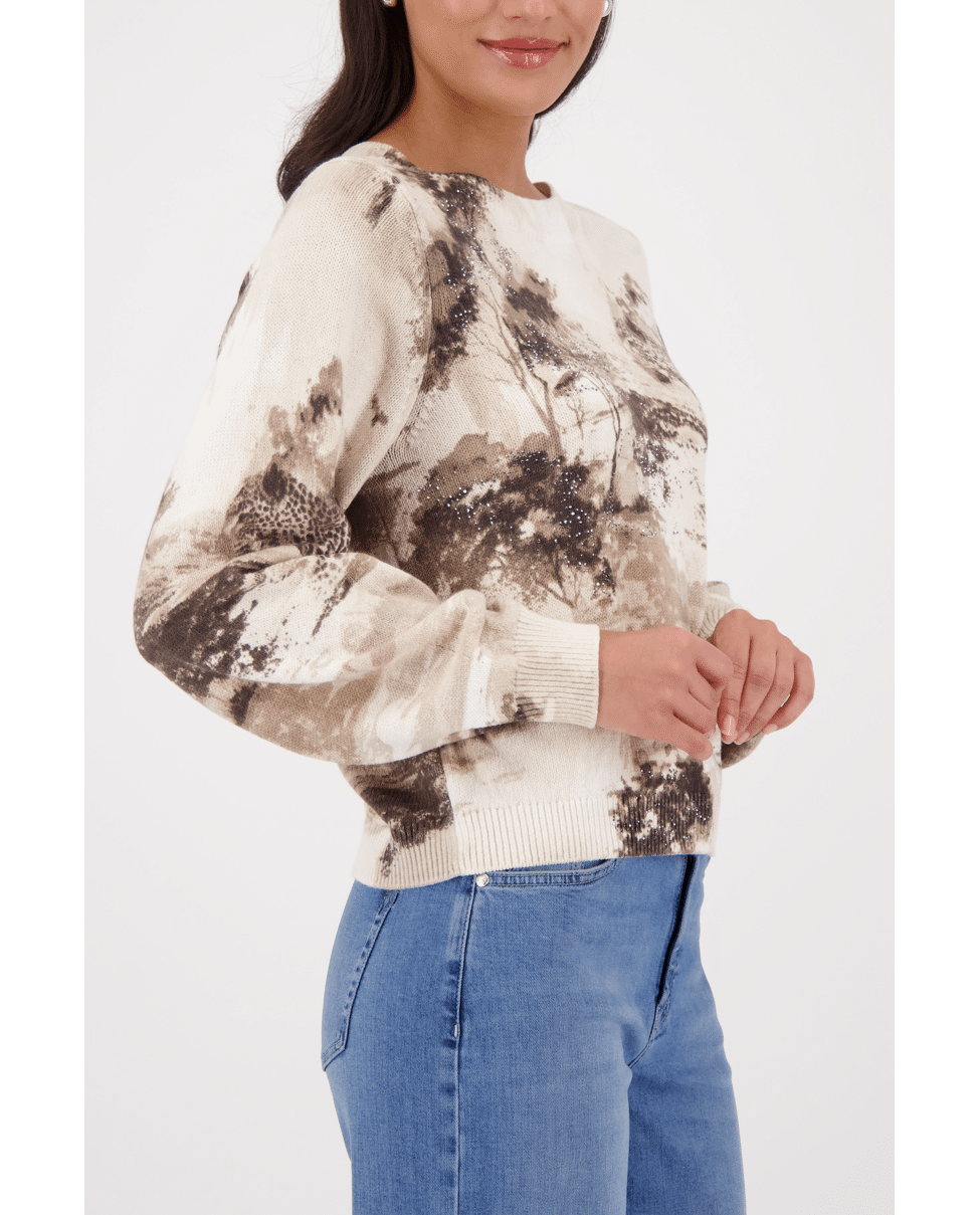 Katoenen dames trui van Monari met savanneprint met glinsteraccenten