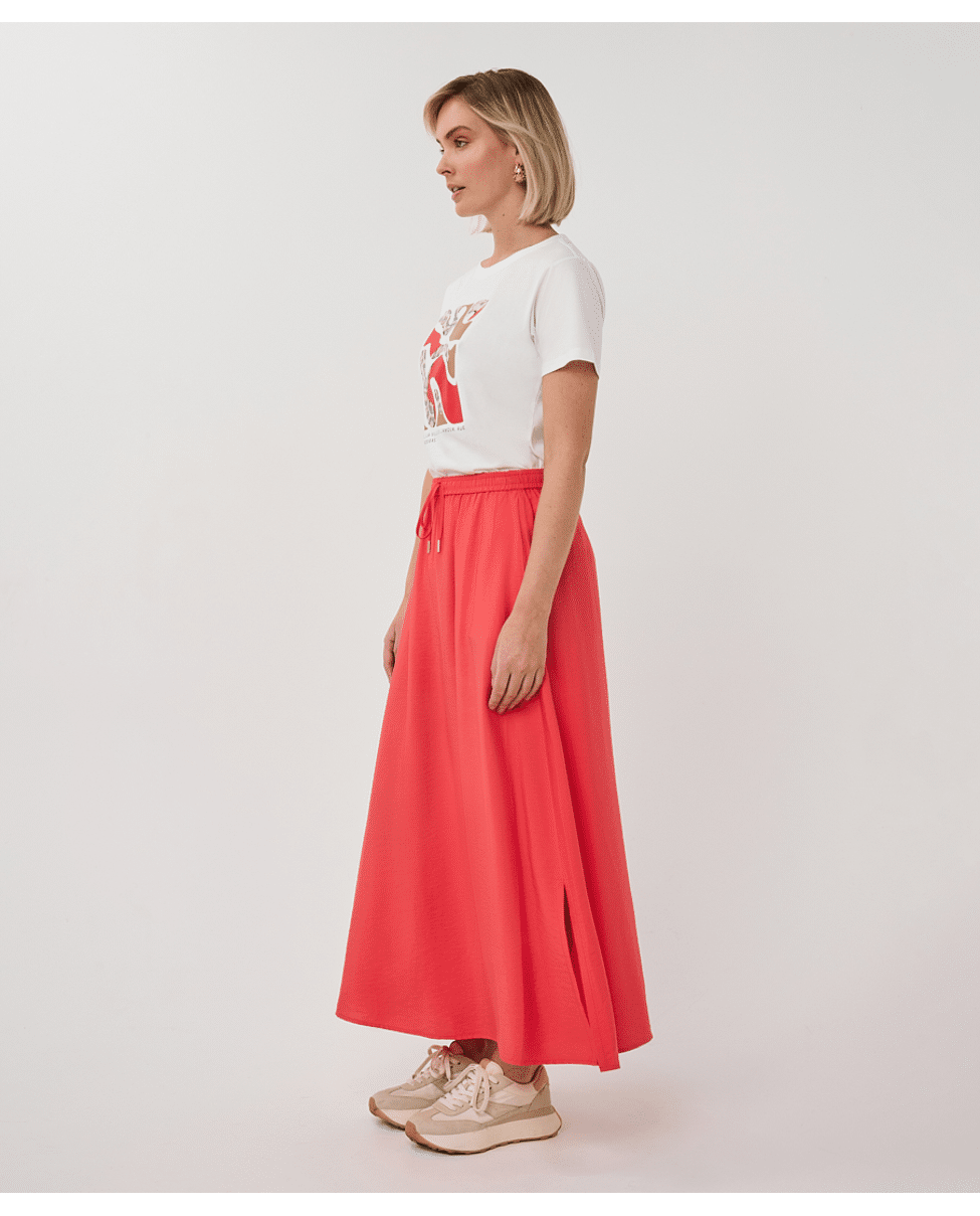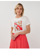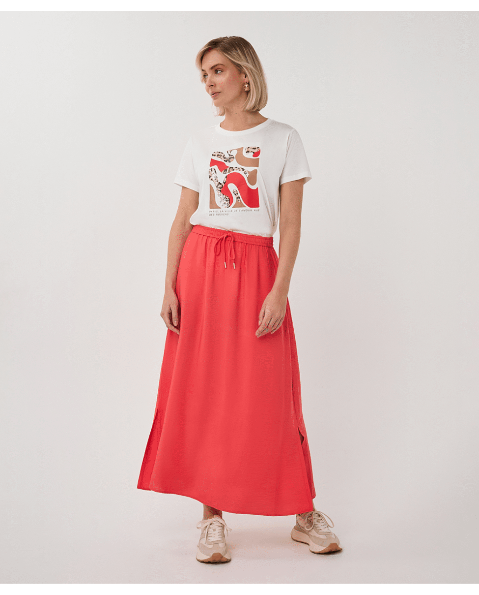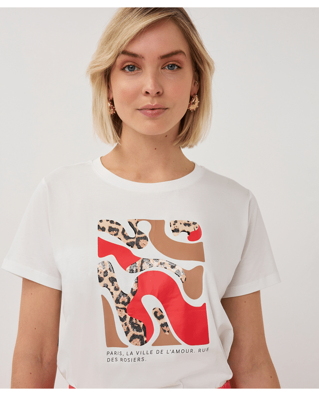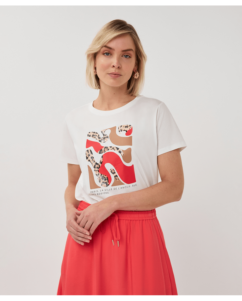 Speels T-shirt met "Paris"-print in een frisse rood-witte combinatie. Gemaakt van zacht katoen met lichte stretch in de boorden – een comfortabele basic met een vleugje Franse flair.