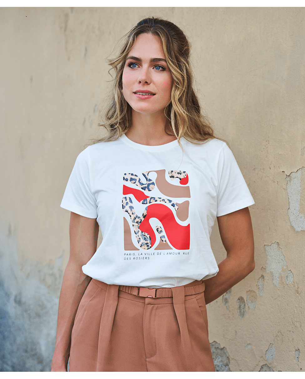 De combinatie van minimalistische stijl en een knipoog naar Parijs maakt dit shirt tijdloos én karaktervol.