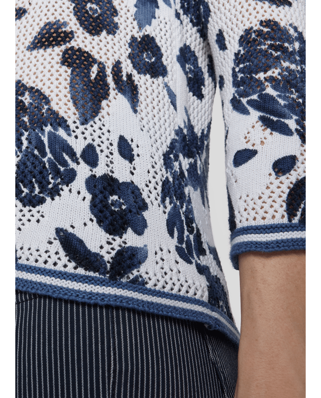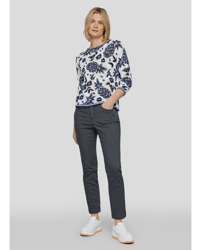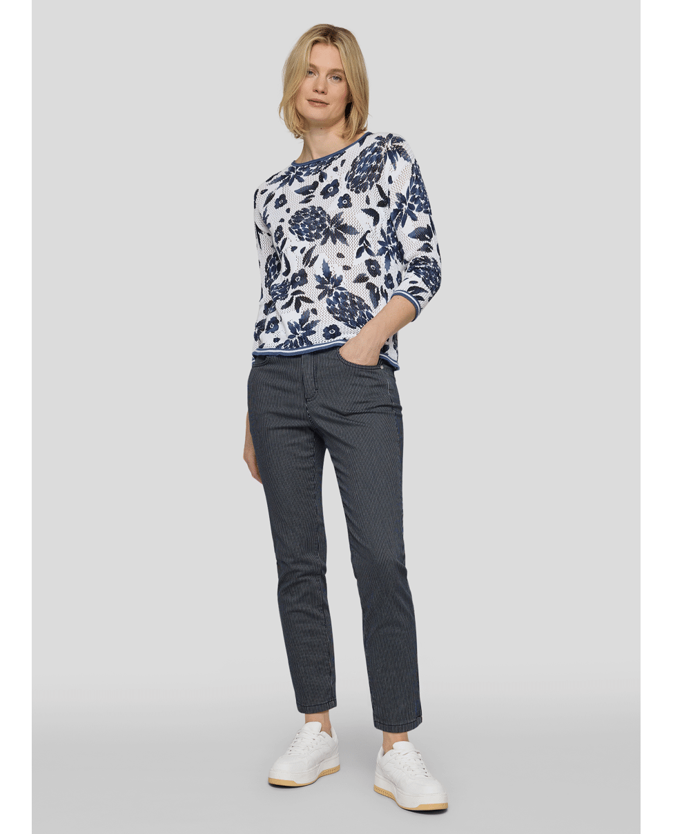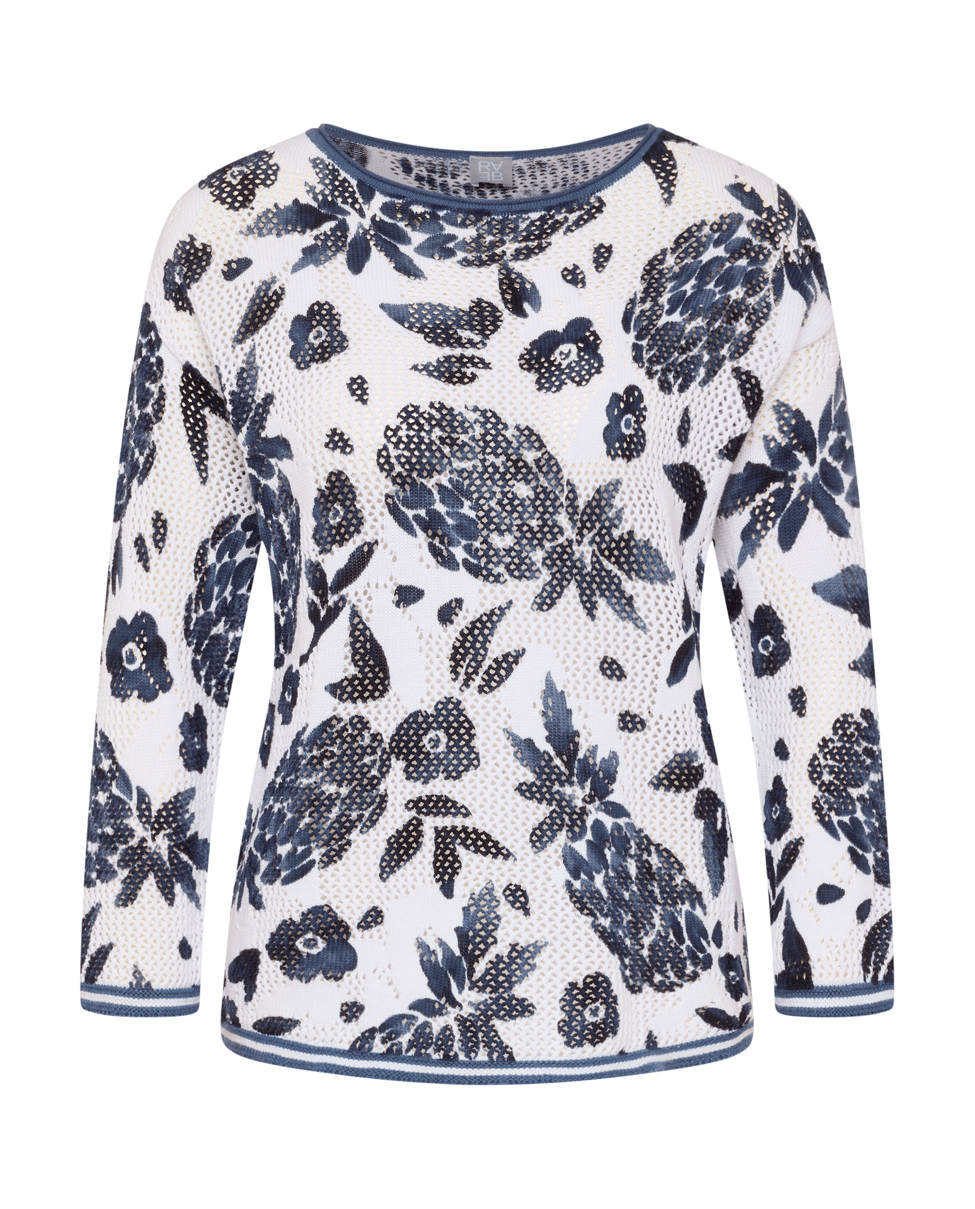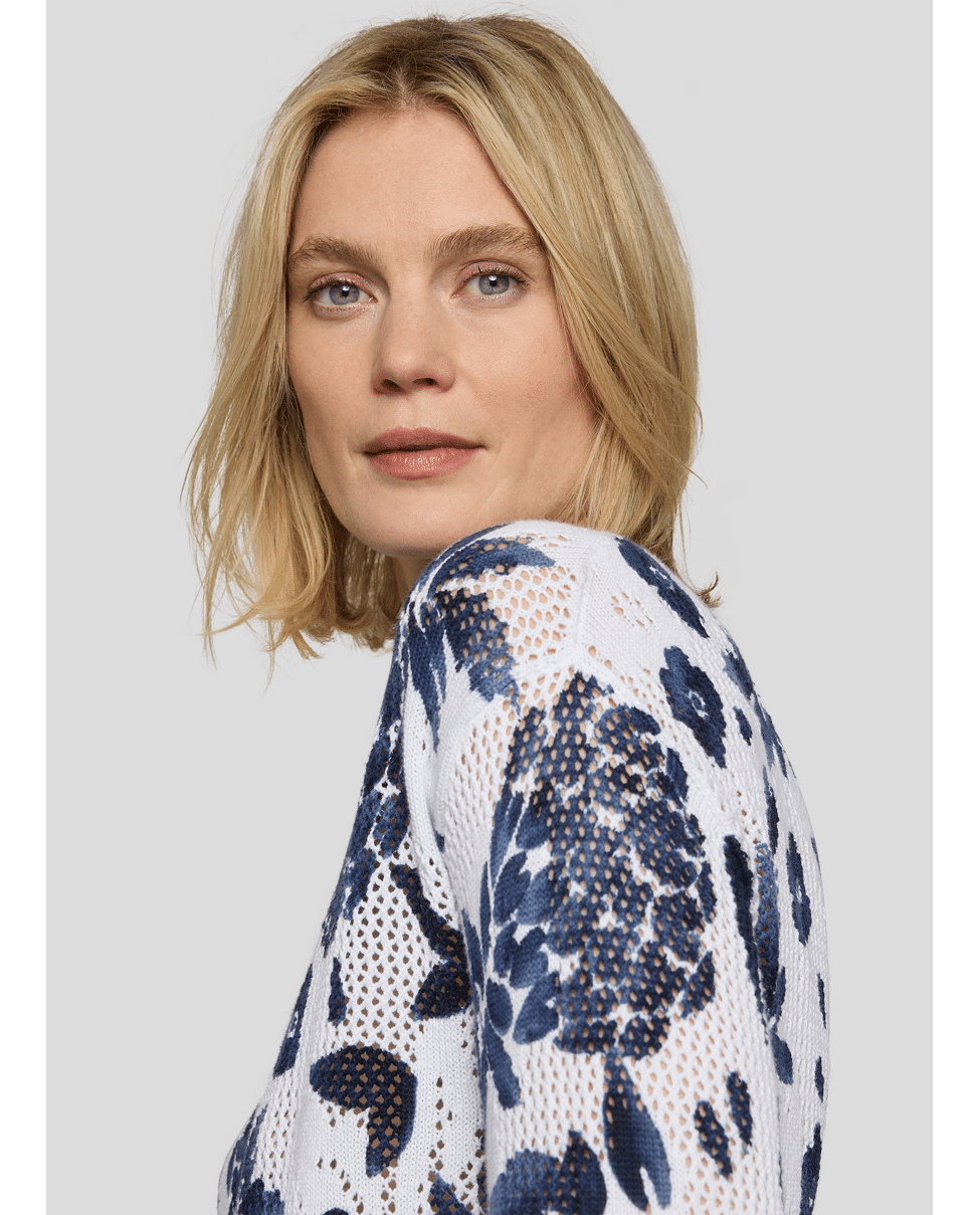Katoenen dames trui van Rabe met opengewerkte structuur, ananas- en bloemenprint, ronde hals en 3/4 mouwen