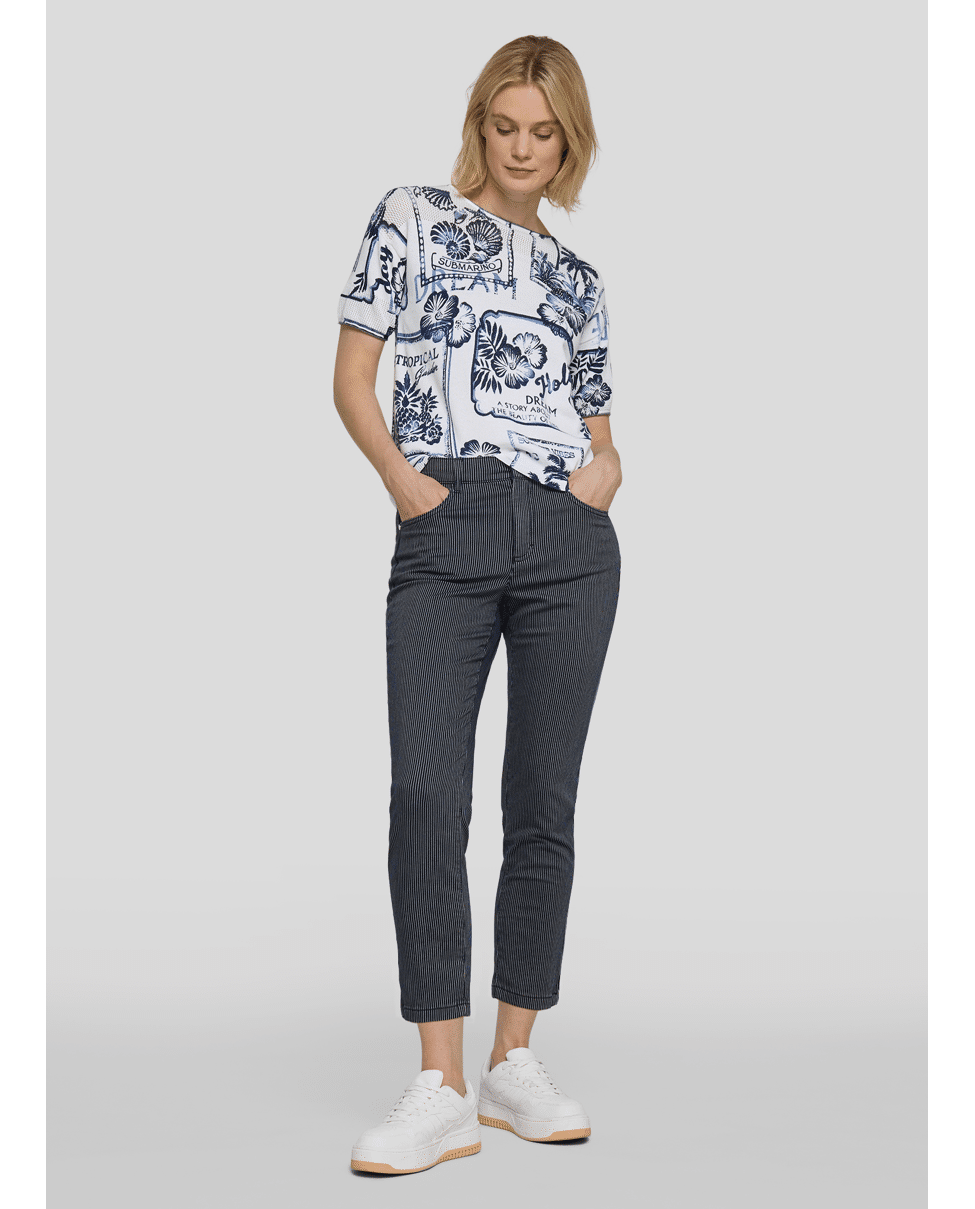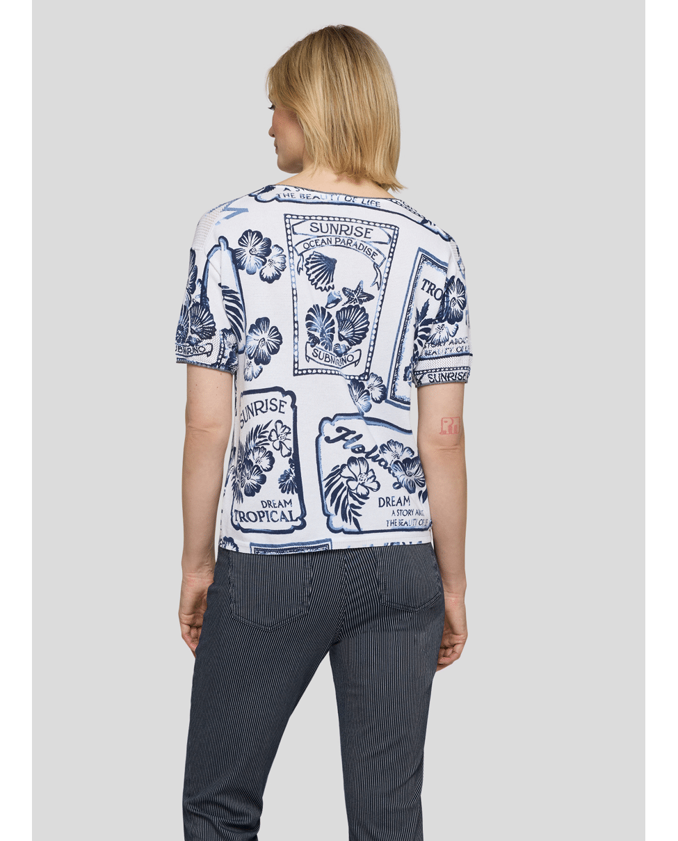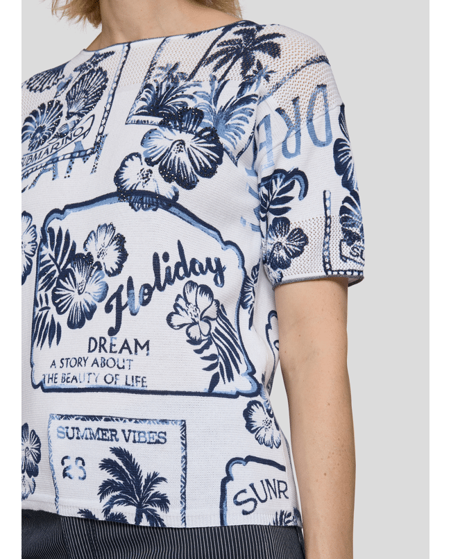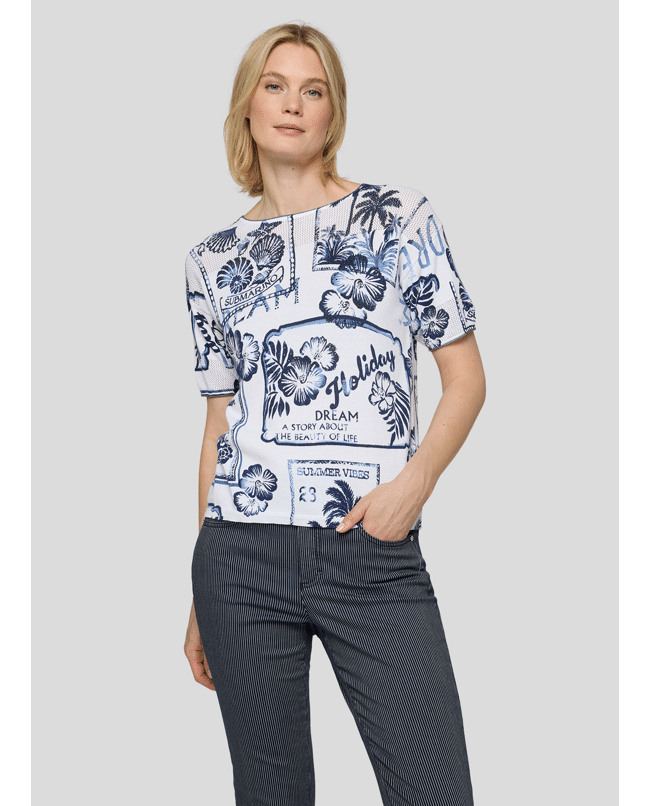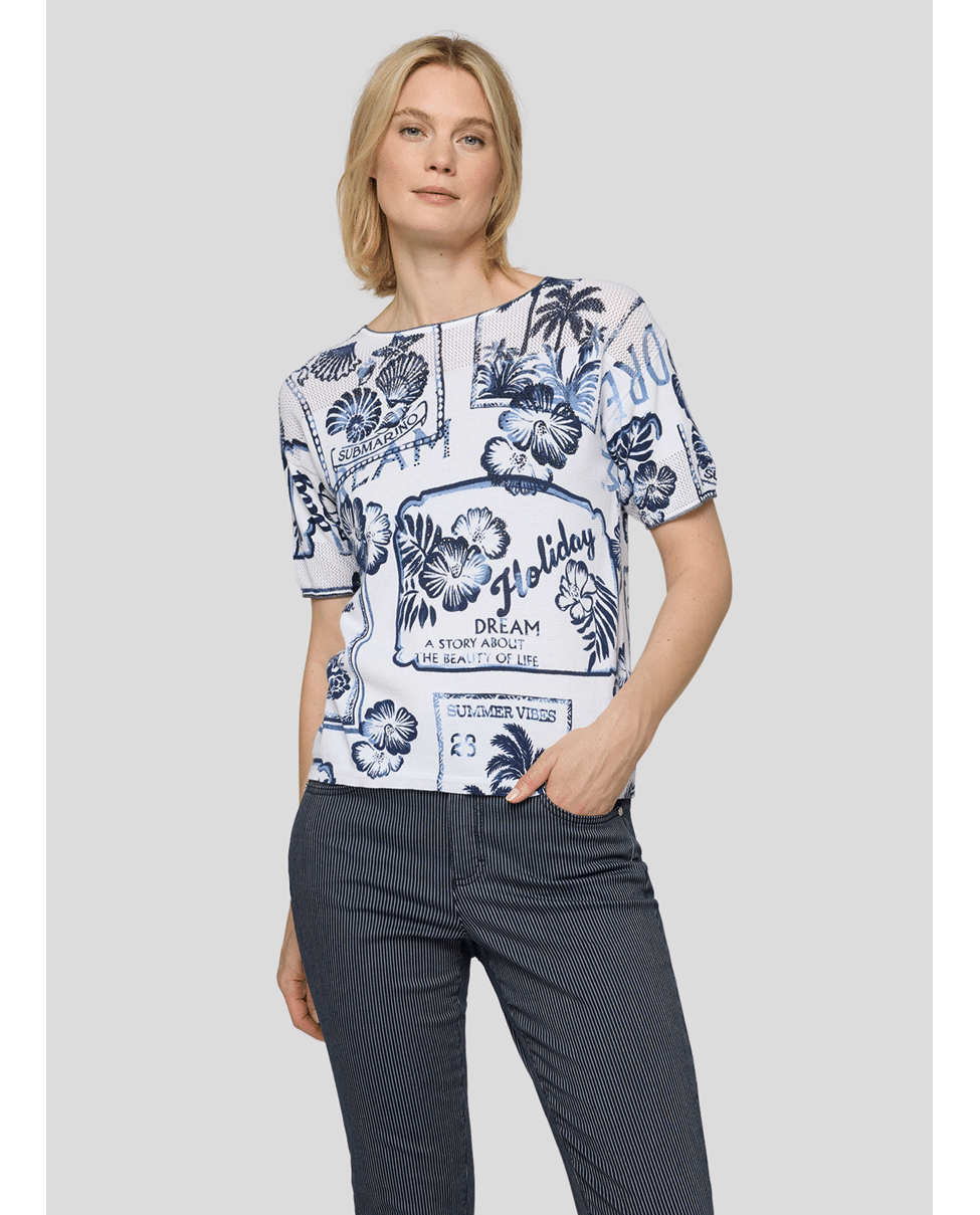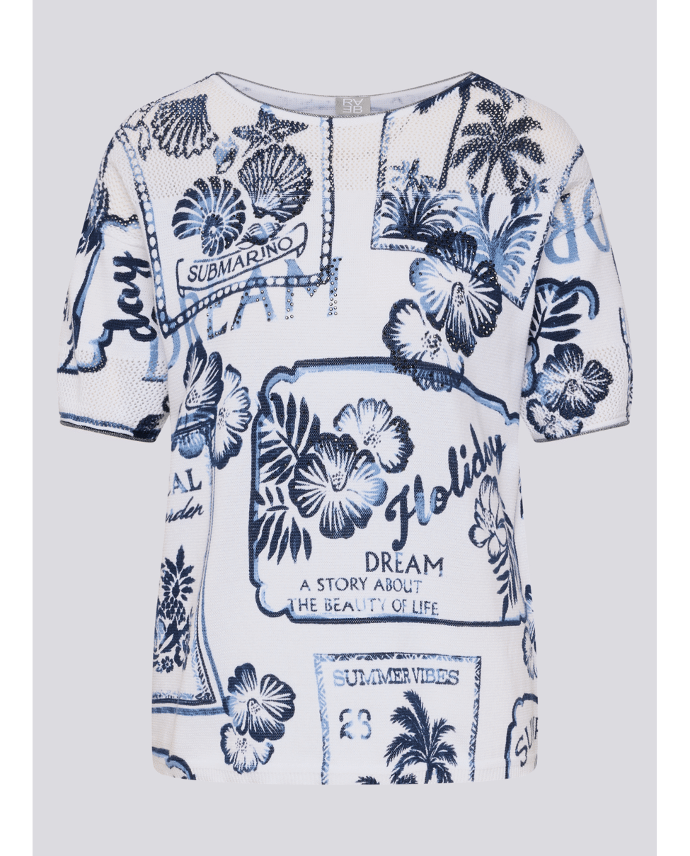 Katoenen dames trui van Rabe met vakantieprints, ronde hals en korte mouwen
