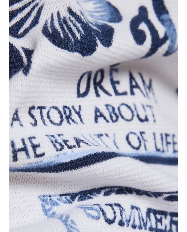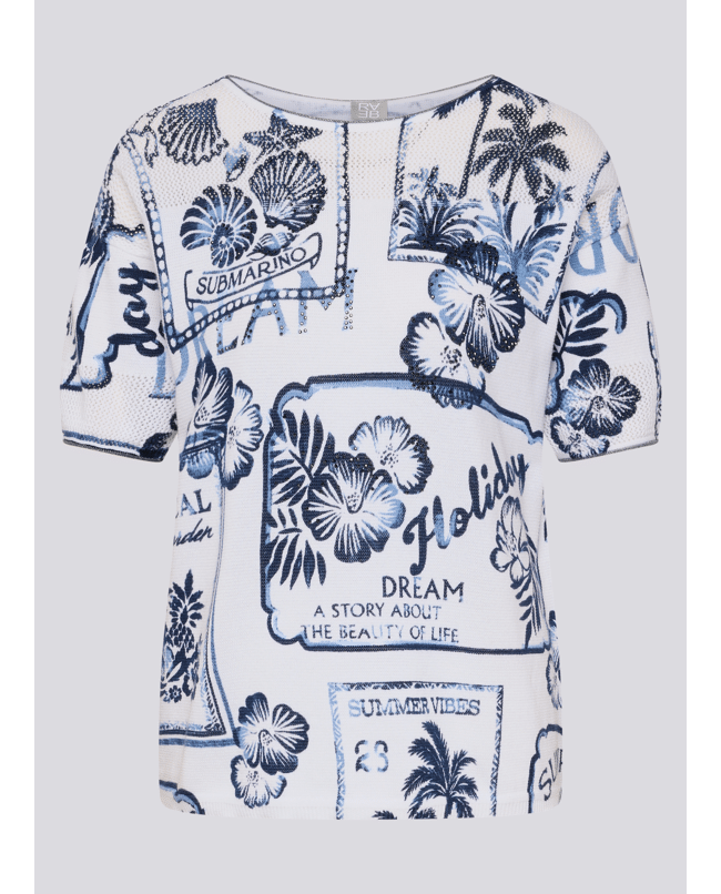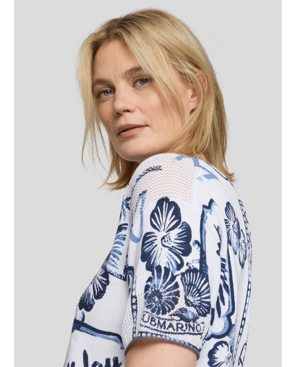 Deze katoenen trui met blauwe vakantieprints ademt summer vibes. Ideaal voor een casual dag met flair – van citytrip tot tuinfeest.