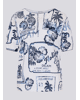 •All-over print in navyblauw op wit