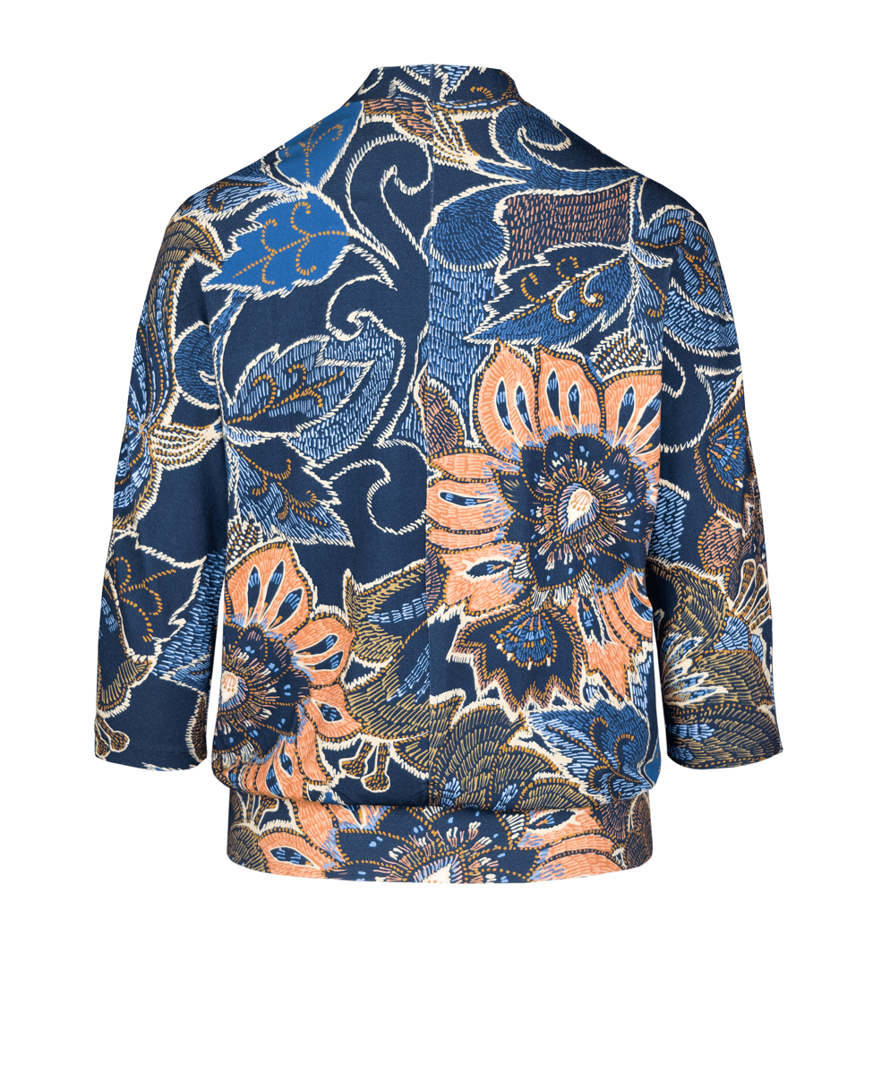 De rijke print en subtiele glans geven het shirt een luxueuze uitstraling — moeiteloos chic met een jeans of pantalon.
