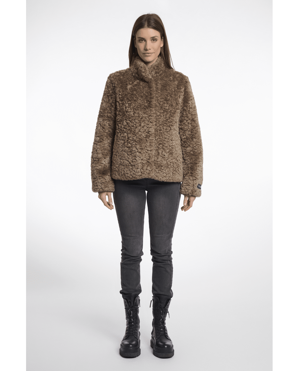 Kion – Dames teddyjas van Rino&Pelle met opstaande hals, imitatiebont, verborgen sluiting en steekzakken