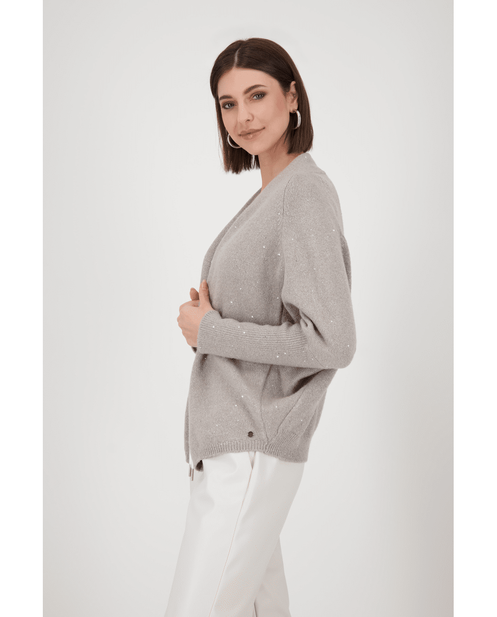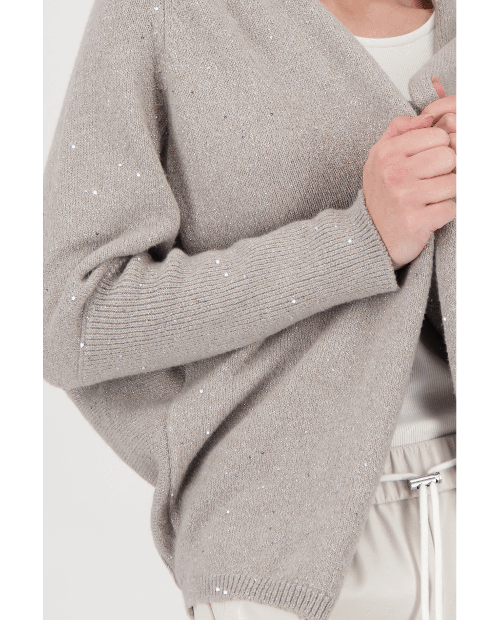 Een zacht en soepelvallend vest met een subtiele glinstering van pailletten. Perfect voor cosy dagen met een vleugje sparkle.