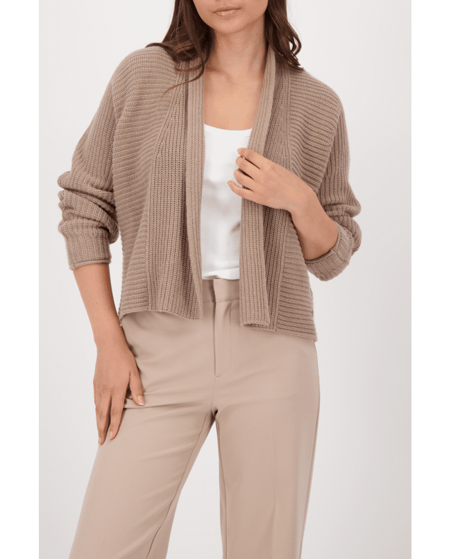 Kort damesvest van Monari met ribstructuur, zonder sluiting en lange mouwen
