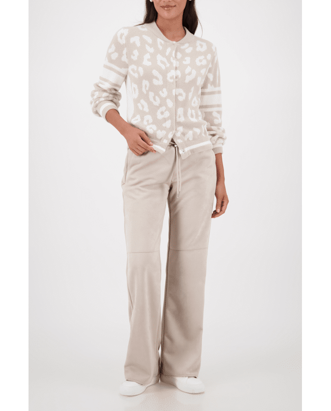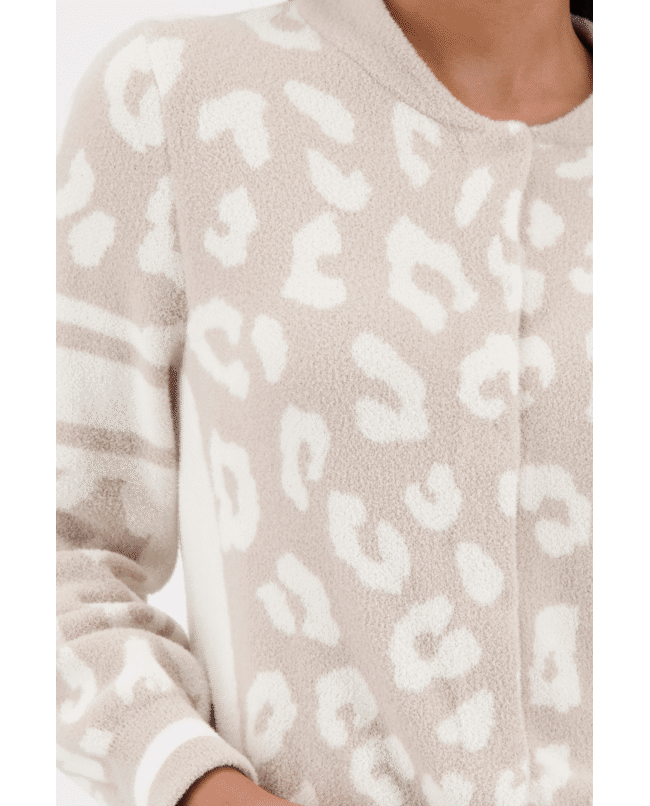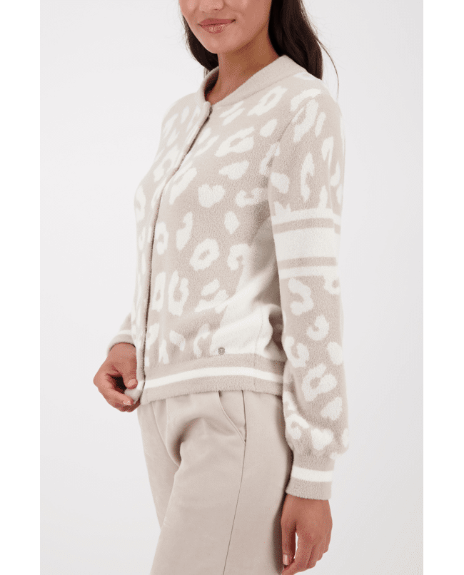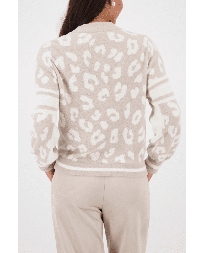 Zacht vest met moderne luipaardprint en sportieve strepen.