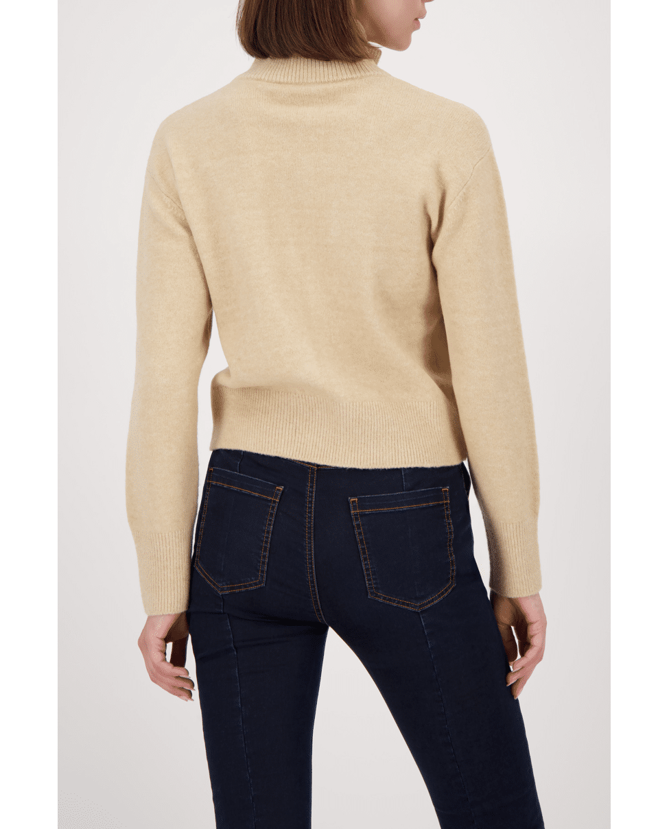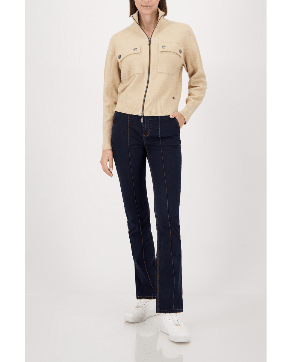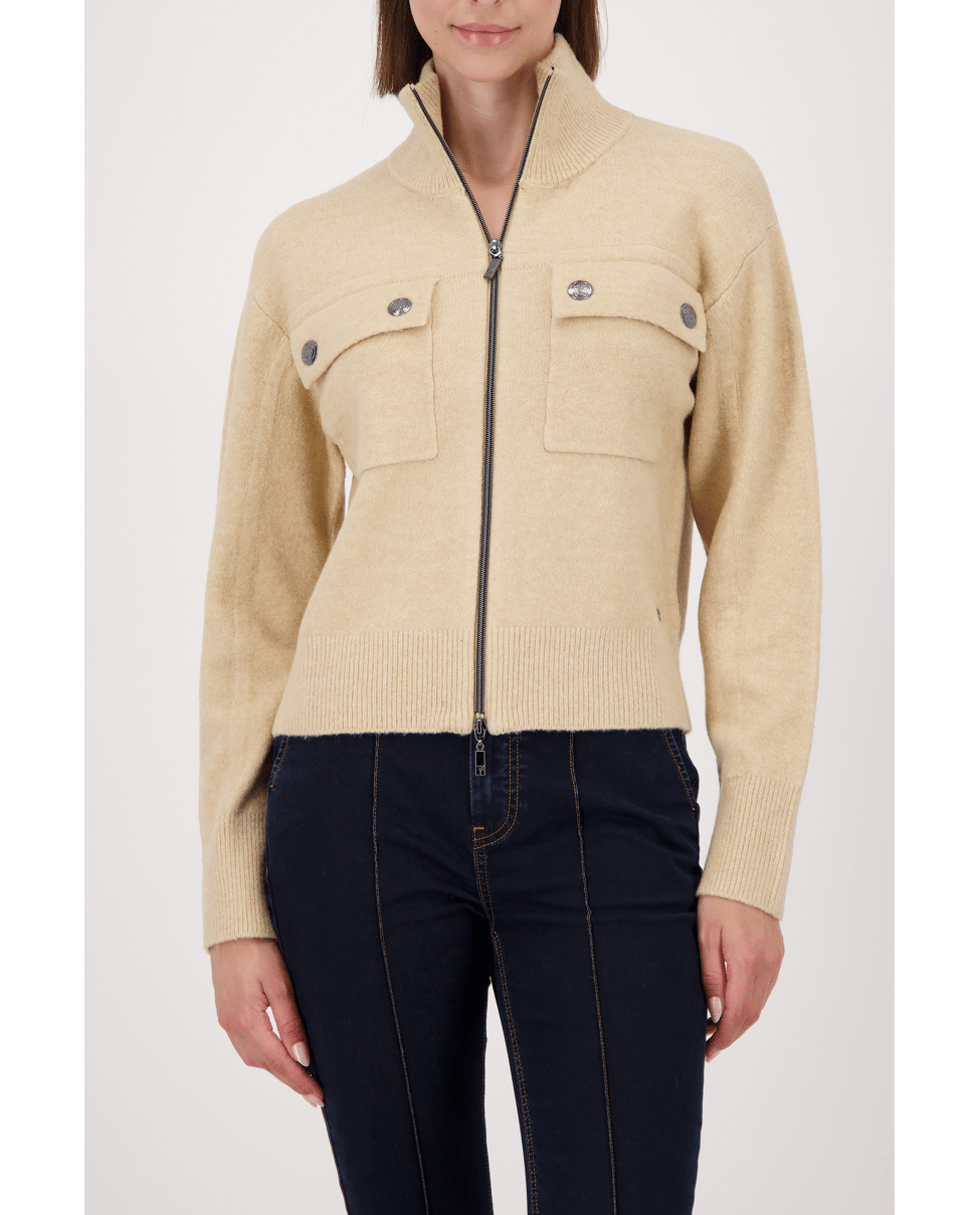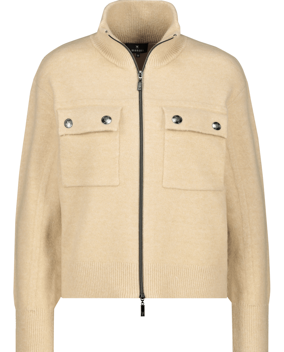 Kort gebreid damesjasje van Monari met klepzakken, ritssluiting, opstaande kraag en lange mouwen