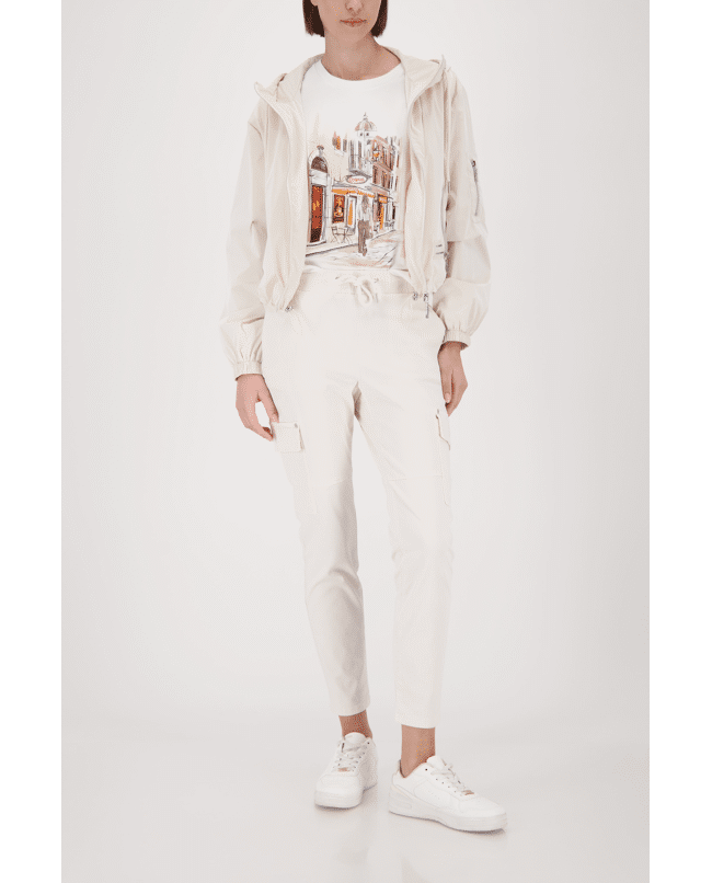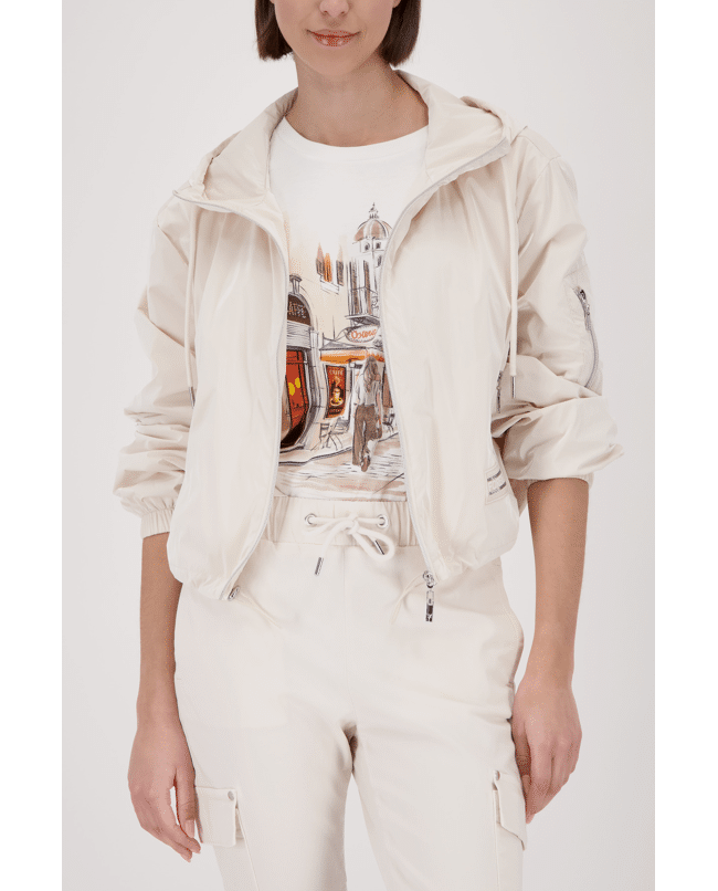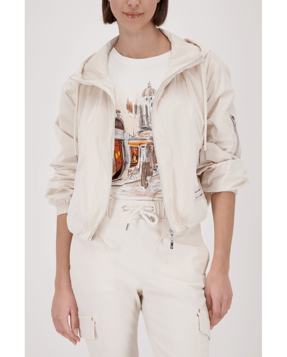 Dit korte damesjack van Monari is perfect voor frisse lentedagen. De capuchon, ritssluiting en sportieve details geven het jasje een moderne, actieve uitstraling. Licht van gewicht en ideaal als tussenjas in het voorjaar.
